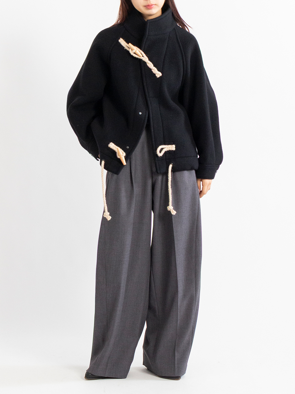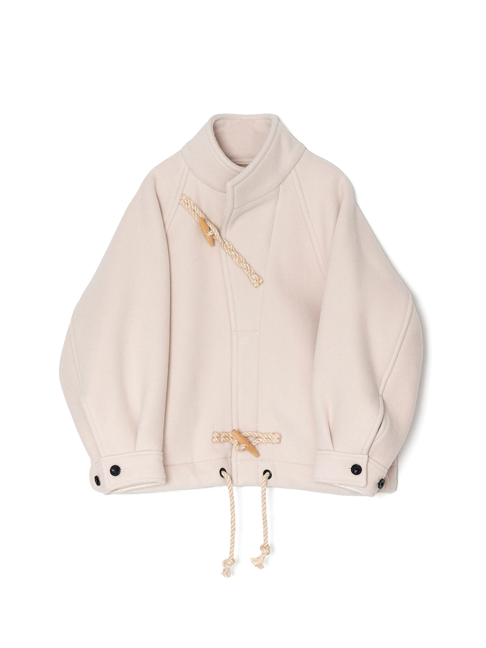 斜めにあしらわれたトグルボタンがポイントのダッフルジャケット。