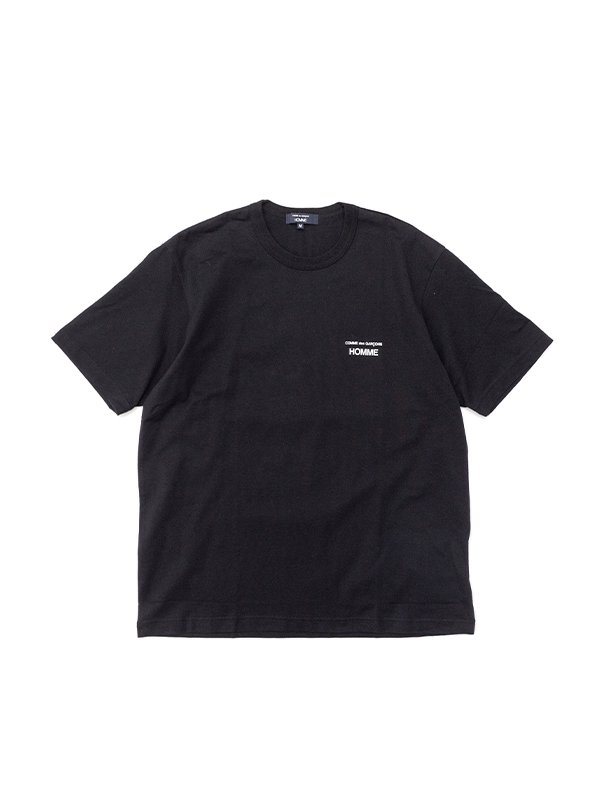 COMME des GARCONS HOMMEのブランドロゴを左胸にプリントしたロゴ入り半袖Tシャツ。
