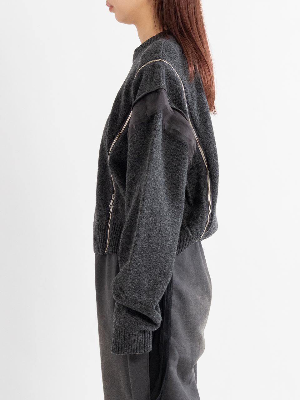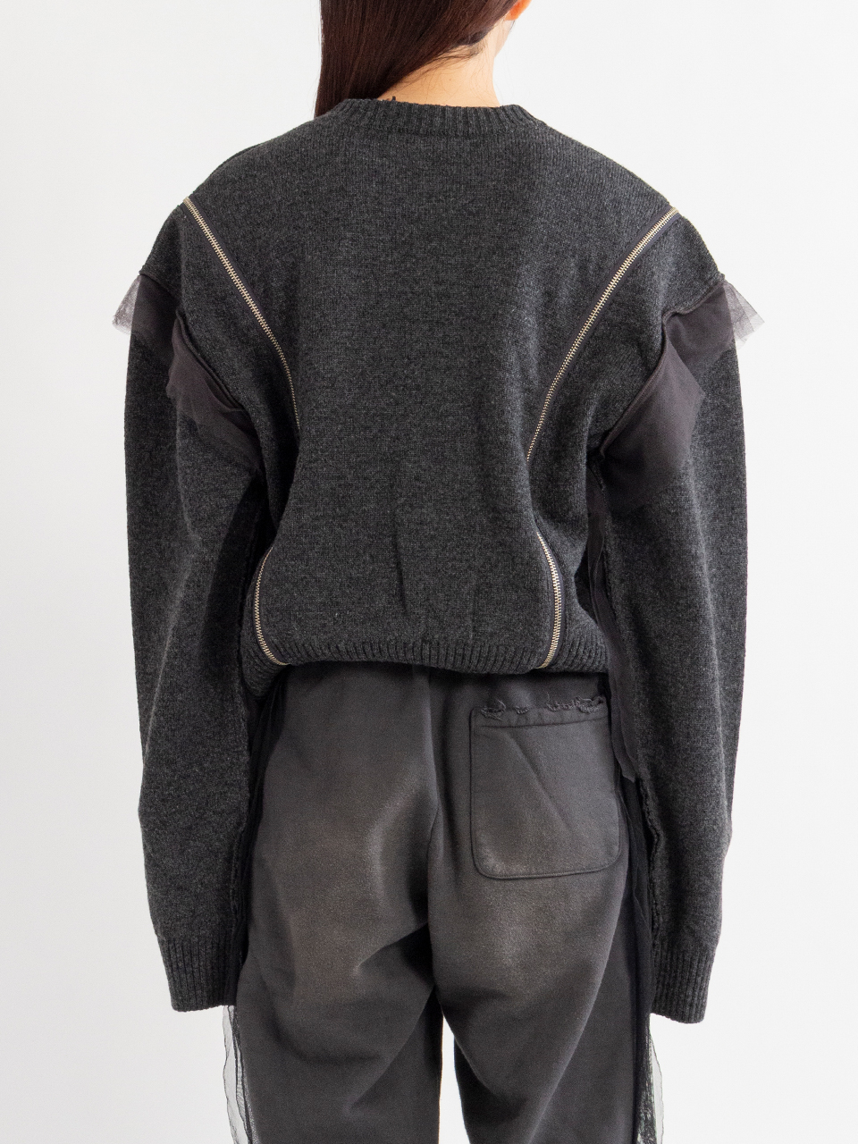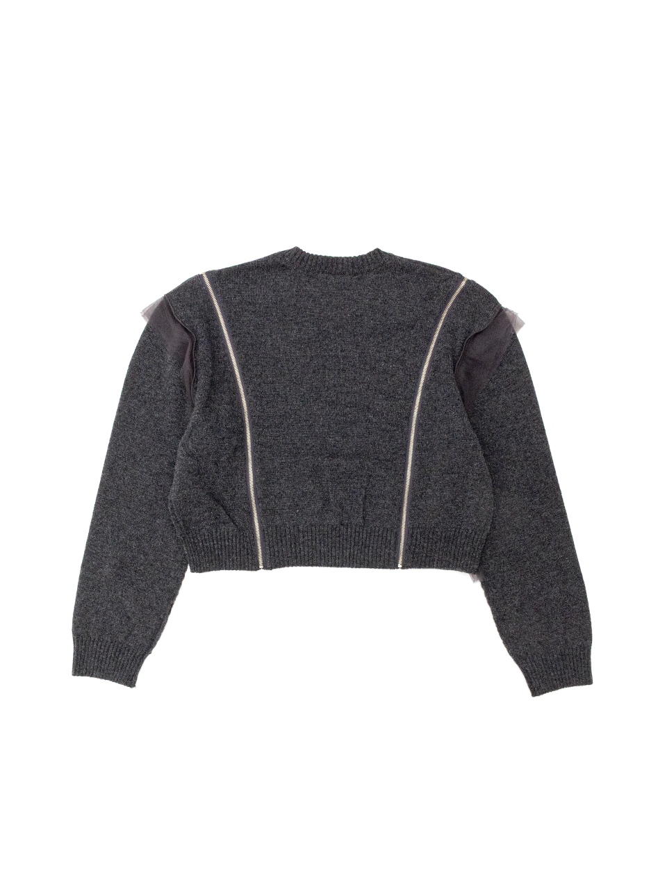 ジップとチュール素材の組み合わせがモード感とエレガントさを演出し、スタイリングにアクセントをプラスできます。
