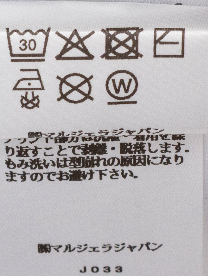 バックには、控えめながらはっきりとしたMM6のシグネチャー、1本の白いステッチのラインも施されています。