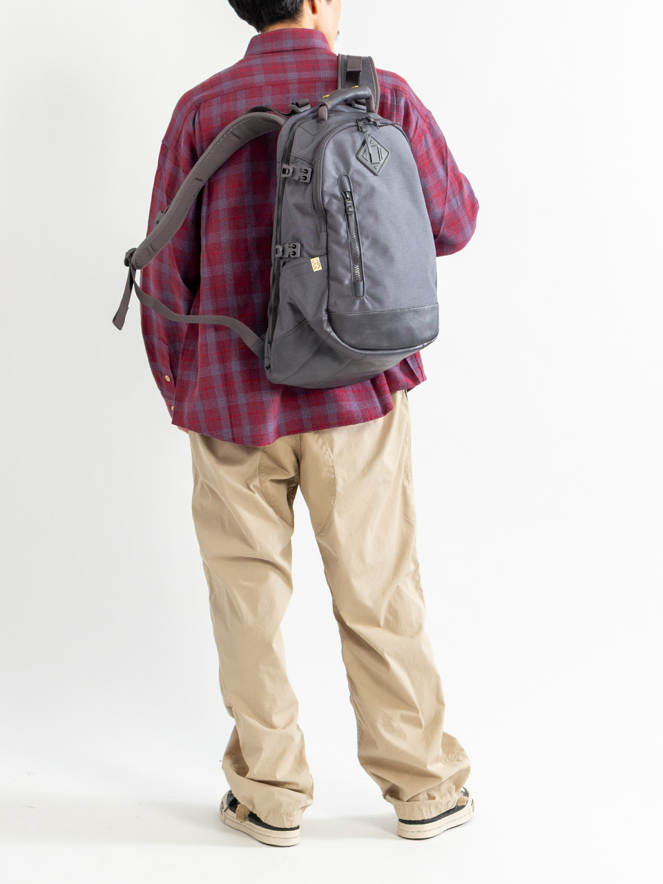 CORDURAナイロンとフランス製ベジタブルタンニングラムレザーを使用した、容量20Lのバックパック。