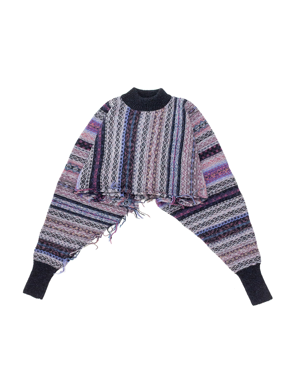 右袖下が開いていることで、通常はクロップドセーターとして着用しながら、右袖を首に巻けばマフラーのようにも使える2WAY仕様です。