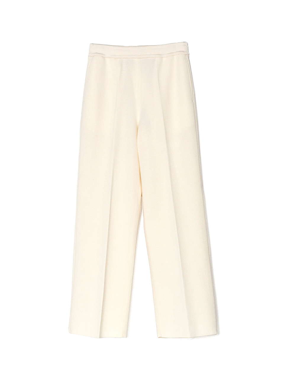 紐付きウエストゴム仕様によりリラックス感とセンターのクリースラインで美脚効果も兼ね備えている上品さのあるパンツです