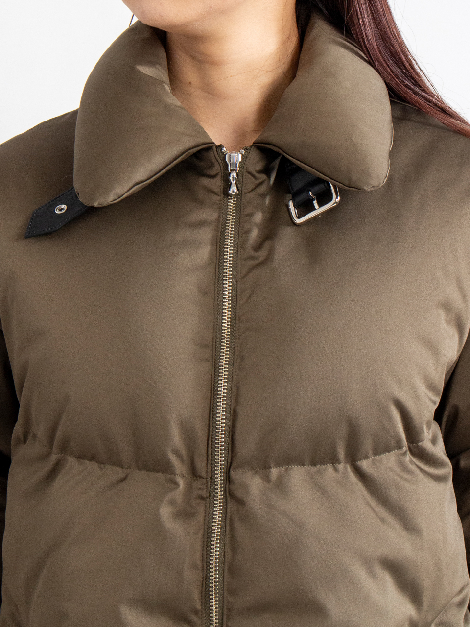 ハリ感とコシのあるナイロンサテンが特徴のダウンコート。