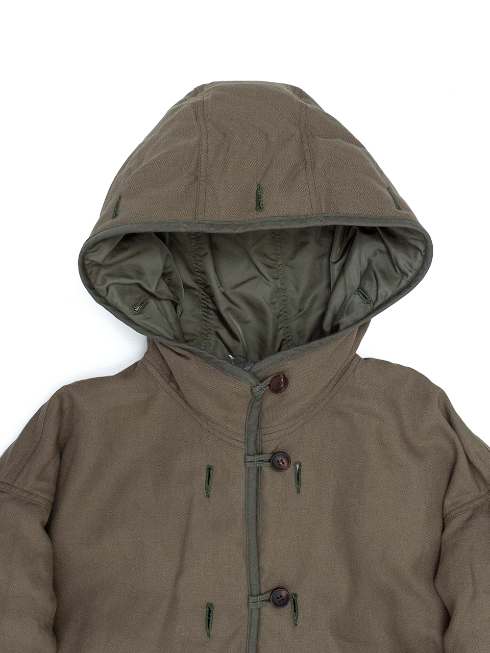 表側は右胸ポケットと脇にシームポケットが付き、裏側は両腰にパッチポケットが付きます。