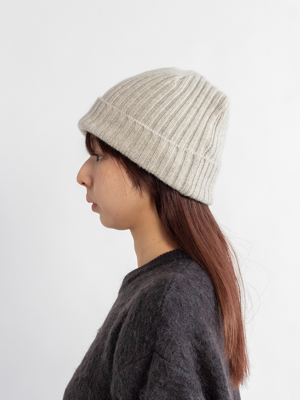 カシミヤニット100%のしっとりとした肌触りが特徴のニットビーニー。