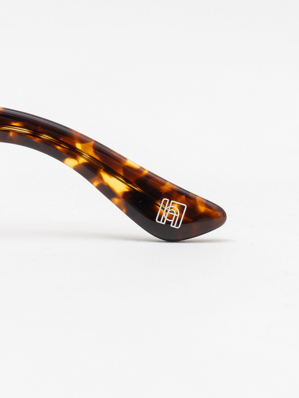 太めのフレームとシャープなスクエアシェイプが特徴のモードなアイウェア。