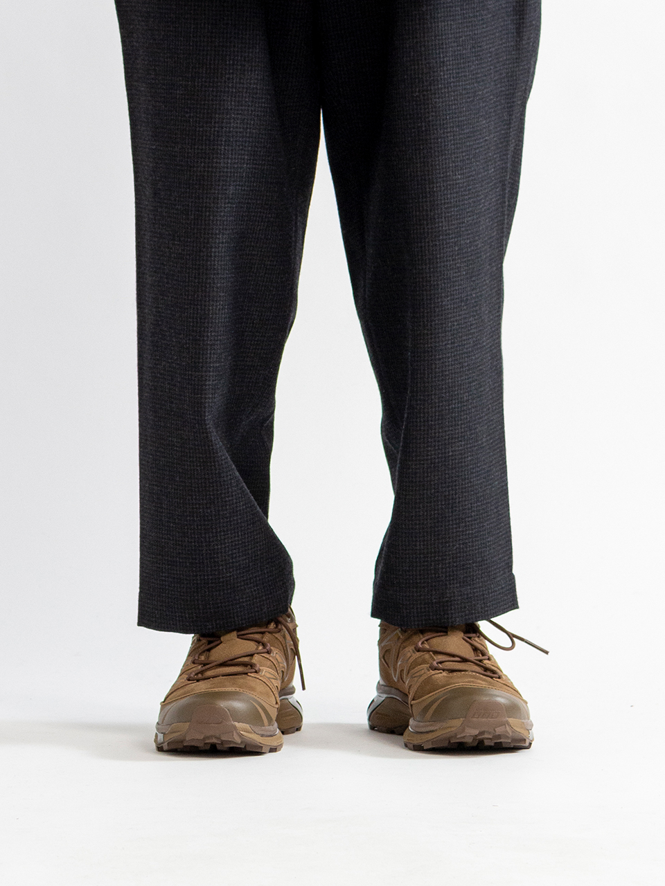 アッパーは、フルグレインレザーとスエードを使用した、さりげなく高級感のある仕上がりに。