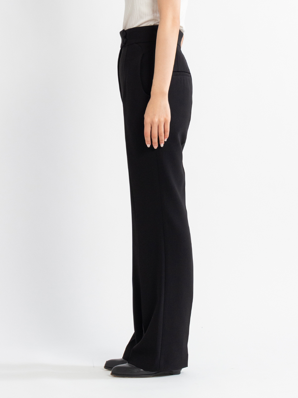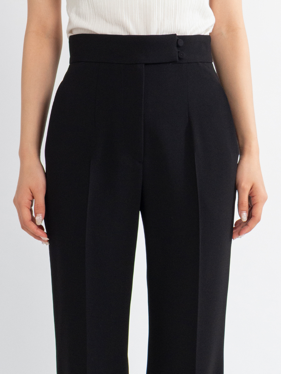 Acetate Polyester High Waisted Center Creased Suit Trousers