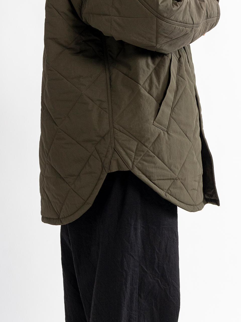 マットな光沢感が特徴のナイロンタッサーキルトを使用した中綿入りのブルゾン。
