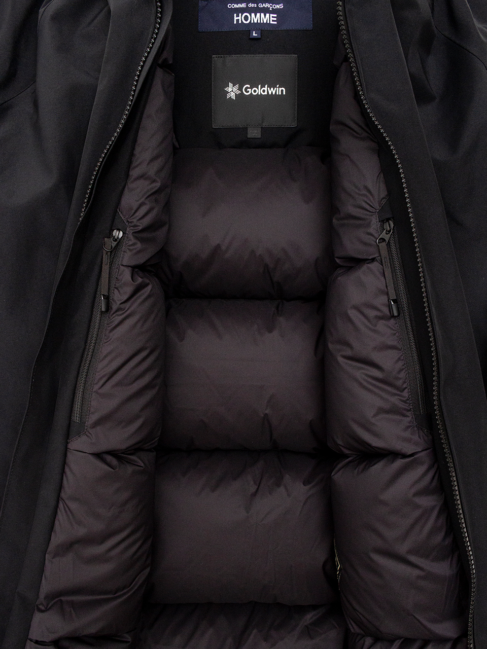 コム デ ギャルソン・オムによるオリジナルデザインにゴールドウインならではのハイテク機能がMIXされた一着。