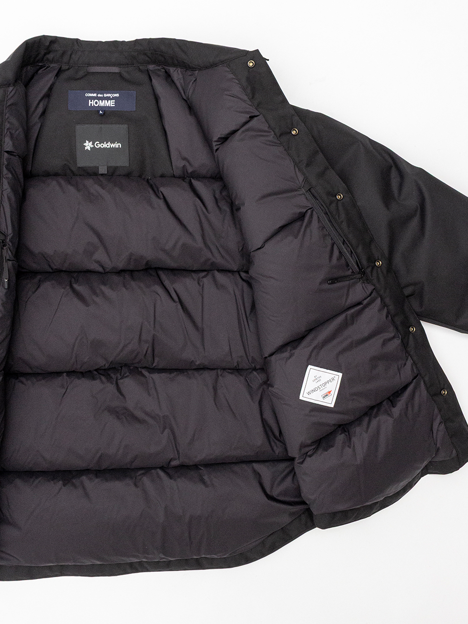 フロントのスナップボタン仕様に胸の立体的なポケットなどコム デ ギャルソン・オムならではのデザイン性も魅力となった、スペシャルなコラボレーションアイテムです。