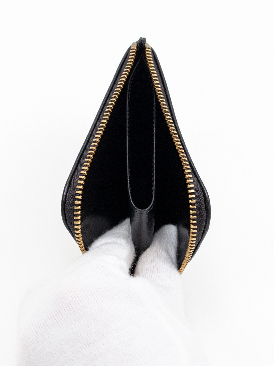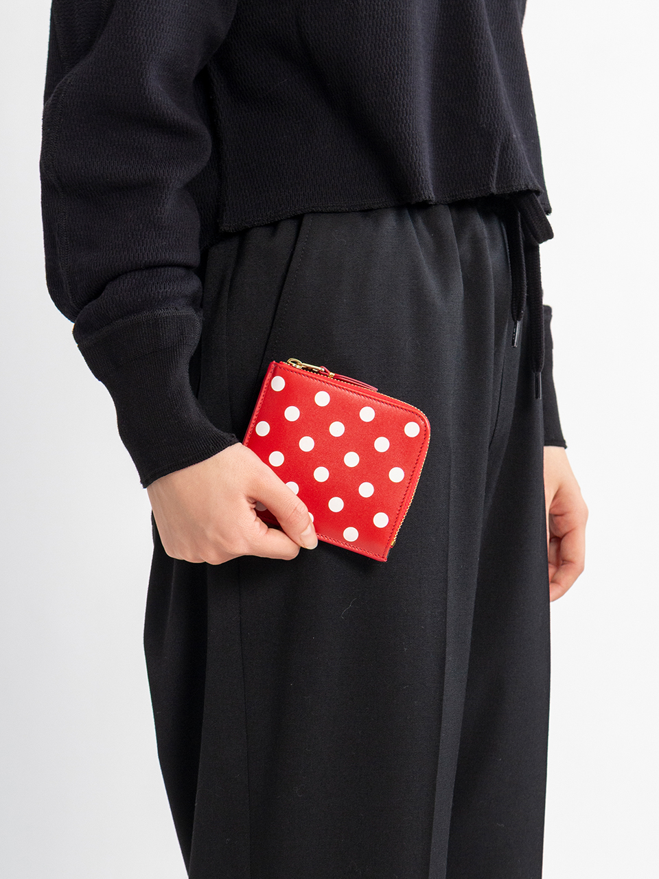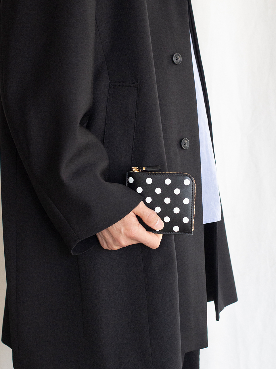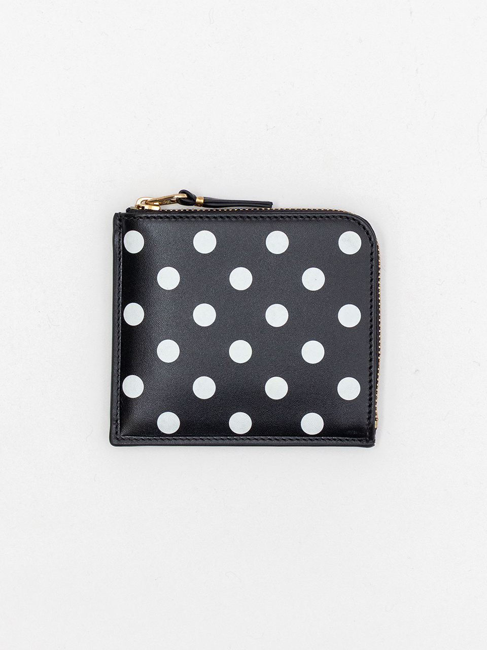 ドットプリントのフラットな表情のカウハイドを使用したL字型ジップウォレット。