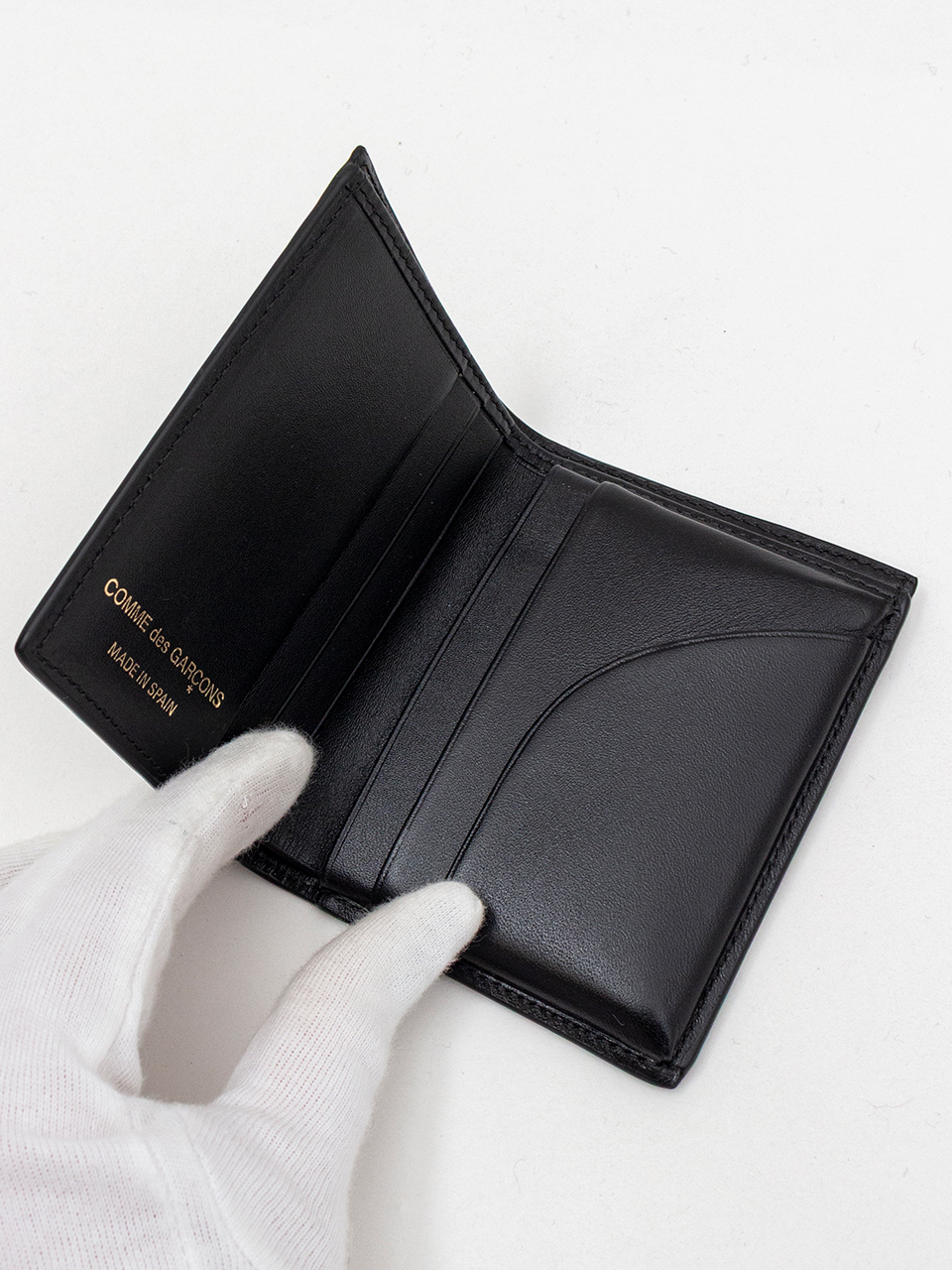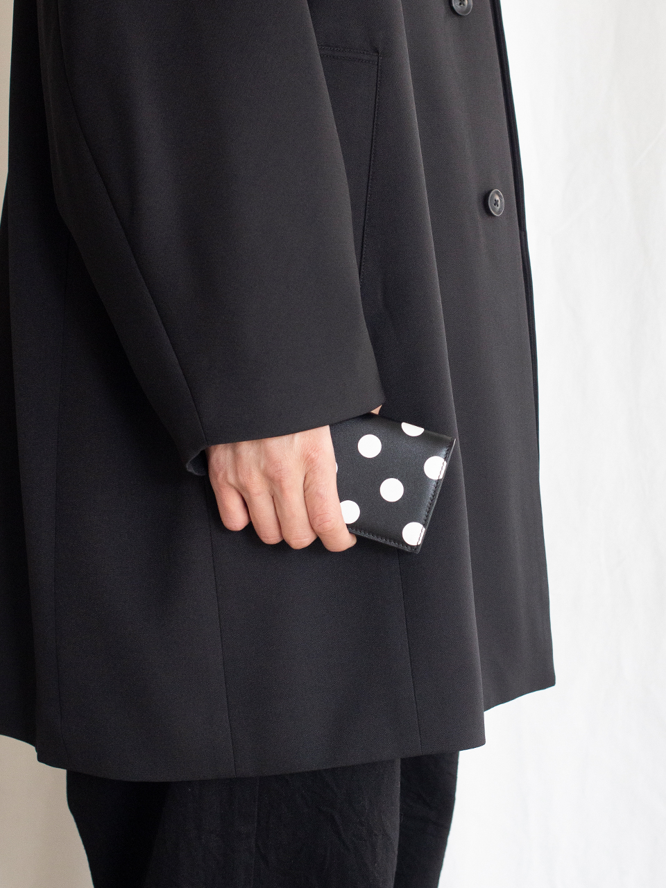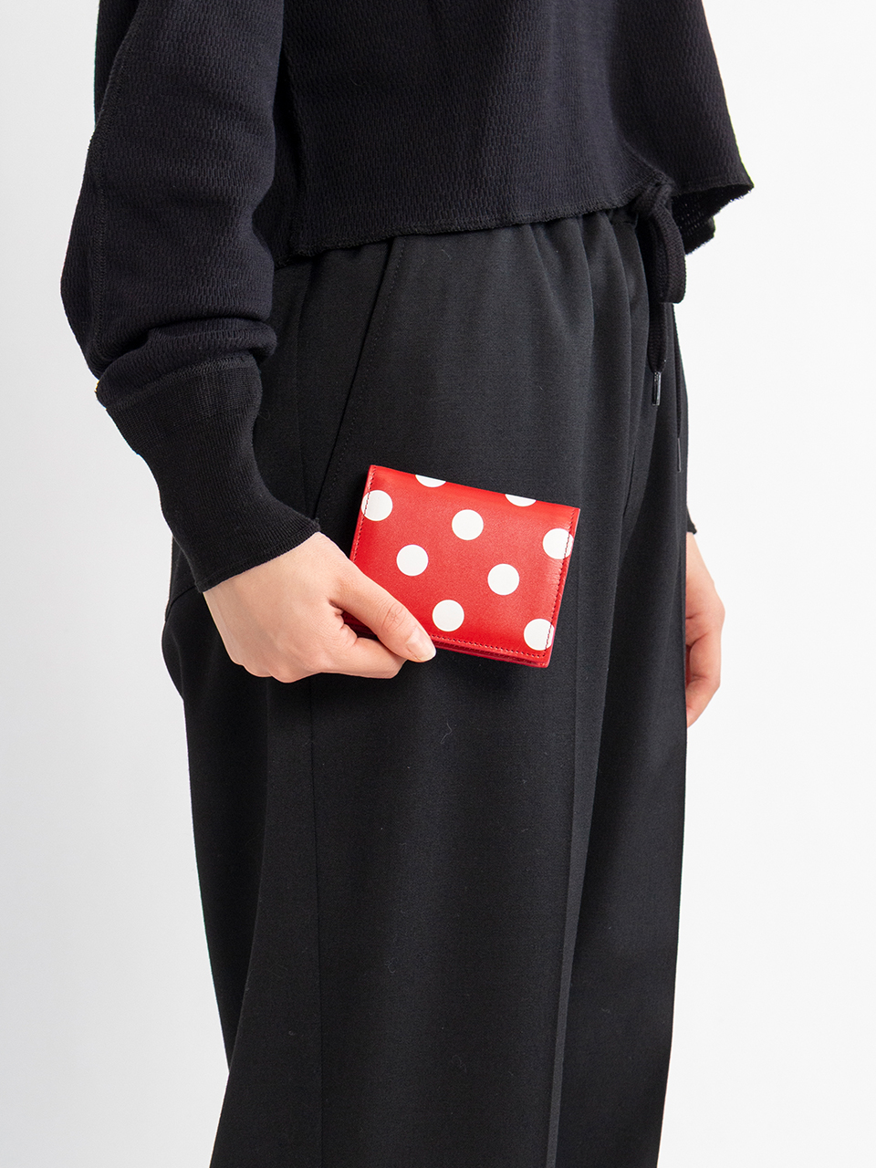 ドットプリントのフラットな表情のカウハイドを使用したカードケース。