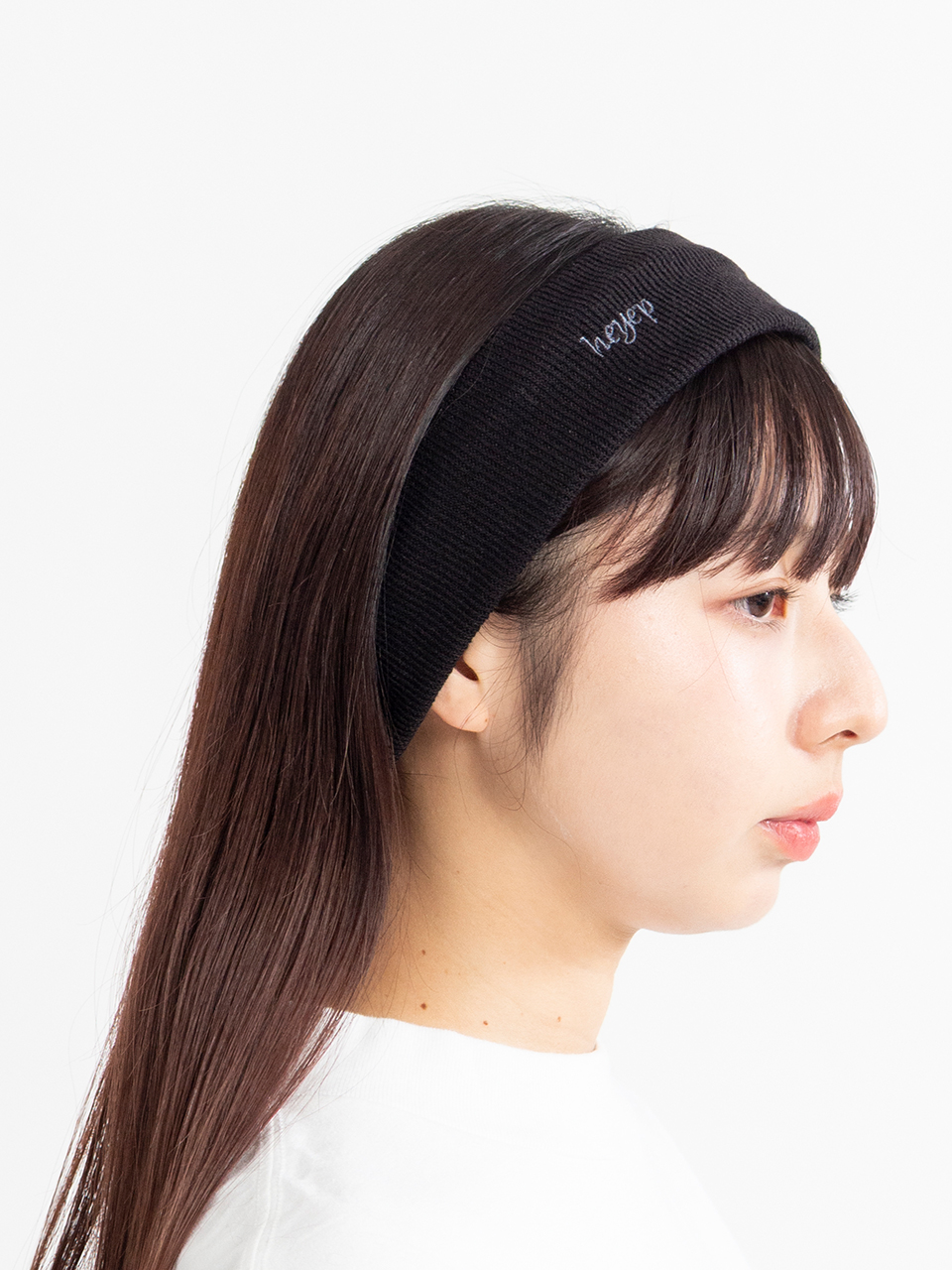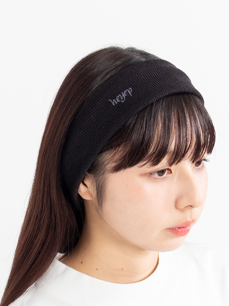小さなロゴ刺繍をあしらった、ニット素材のヘッドバンド。
