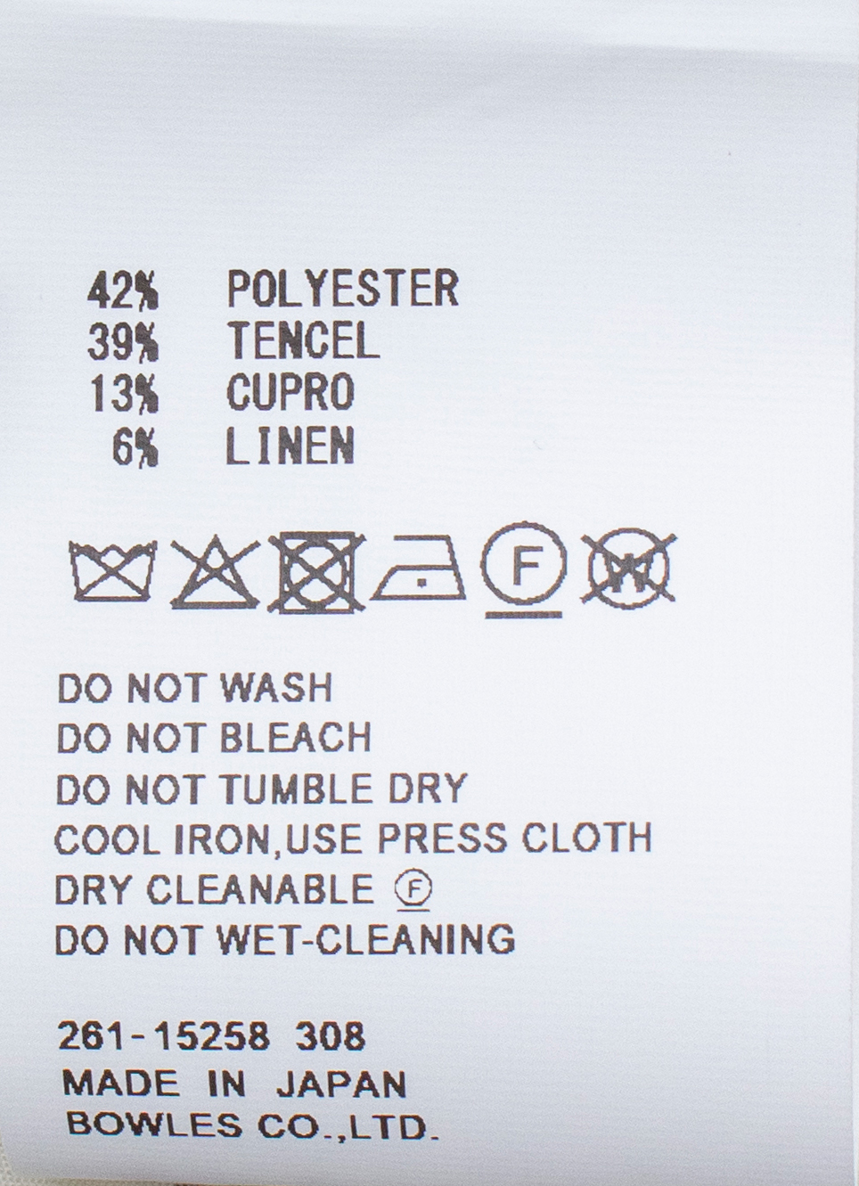 本体 ポリエステル42% テンセル39% キュプラ13% リネン6%
