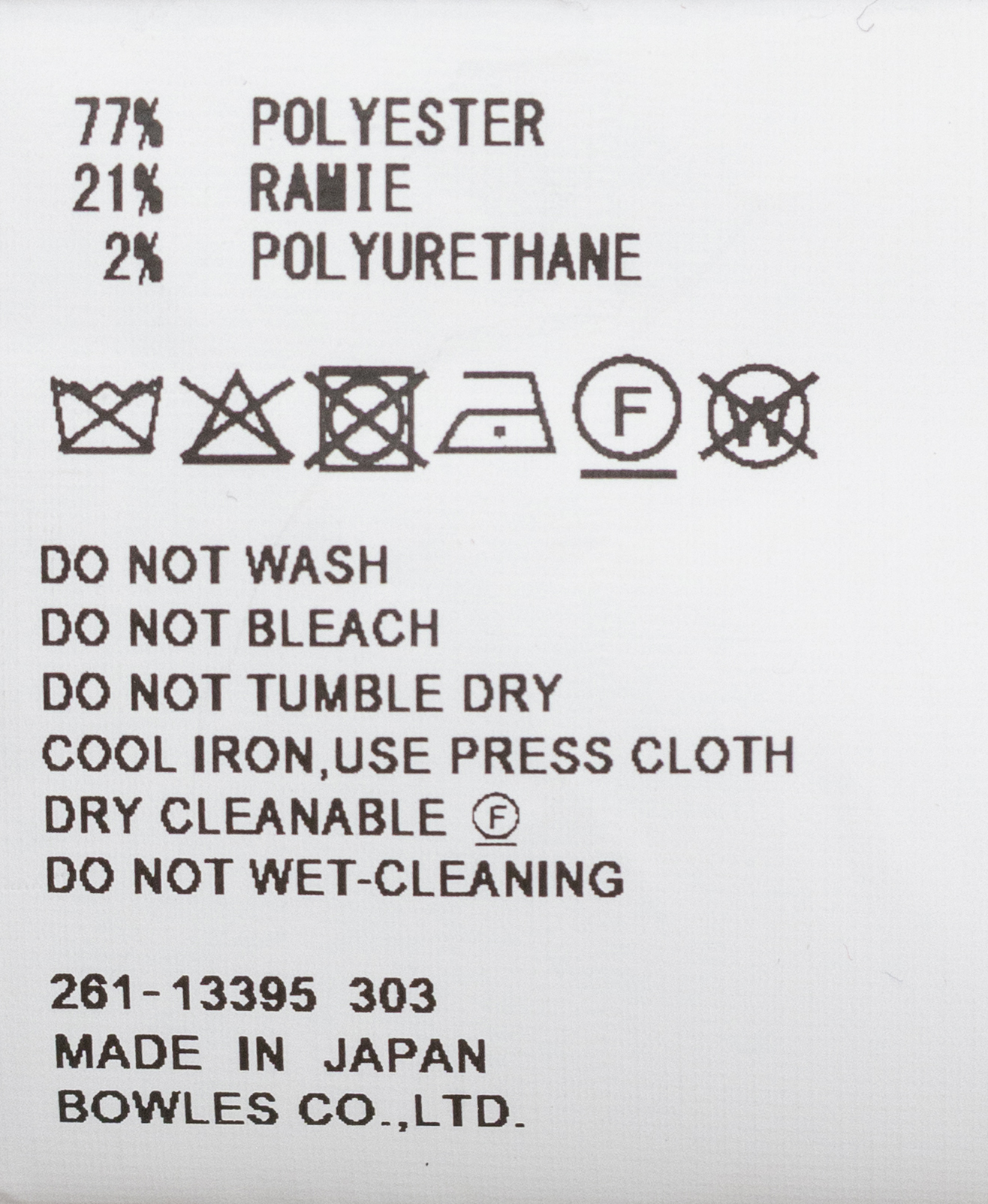 本体 ポリエステル77% ラミー21% ポリウレタン2%