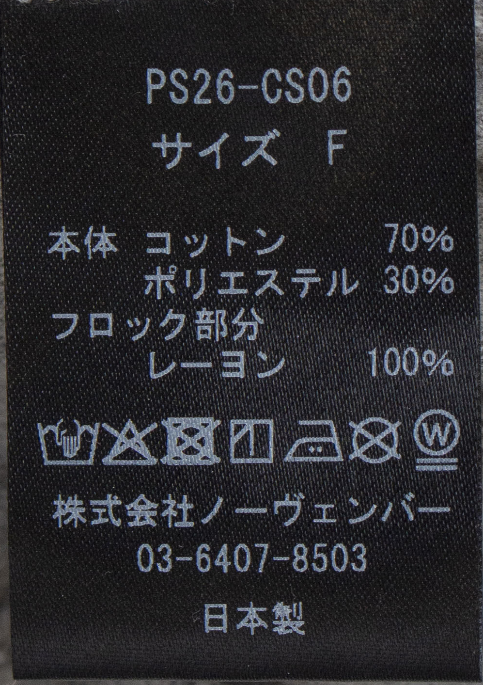 衿と袖口の配色リブが効いたリンガーT に、フロッキープリントを添えた一枚。