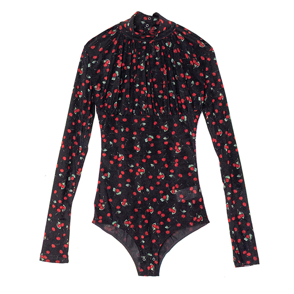 PRINTED VELVET TULLE TURTLENECK BODYSUIT