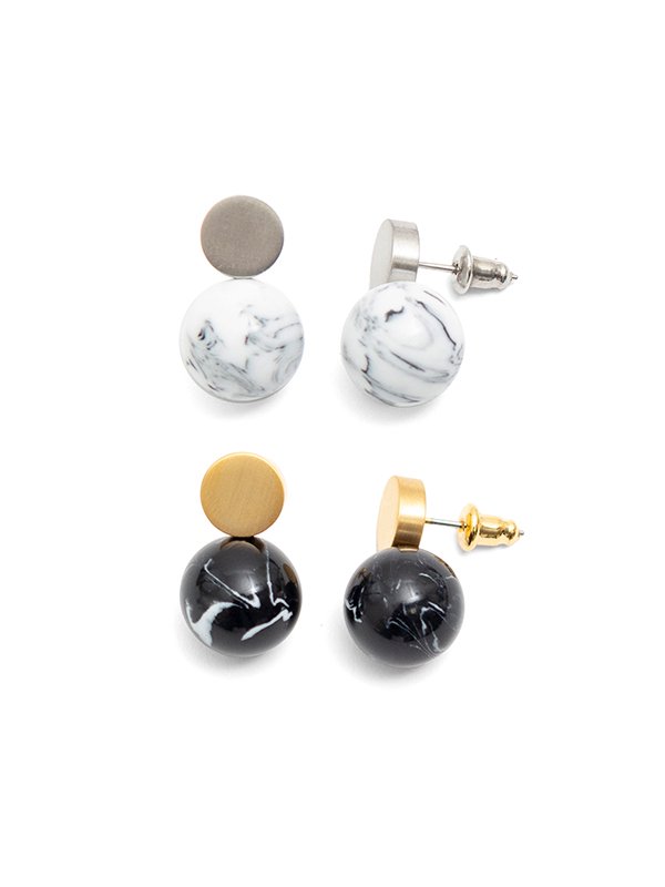 マーブル柄のボールがシンプルな装いにも個性を放つピアス。