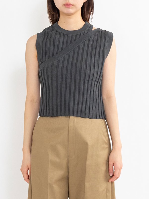 ガス糸を使用したニット素材のタンクトップ。