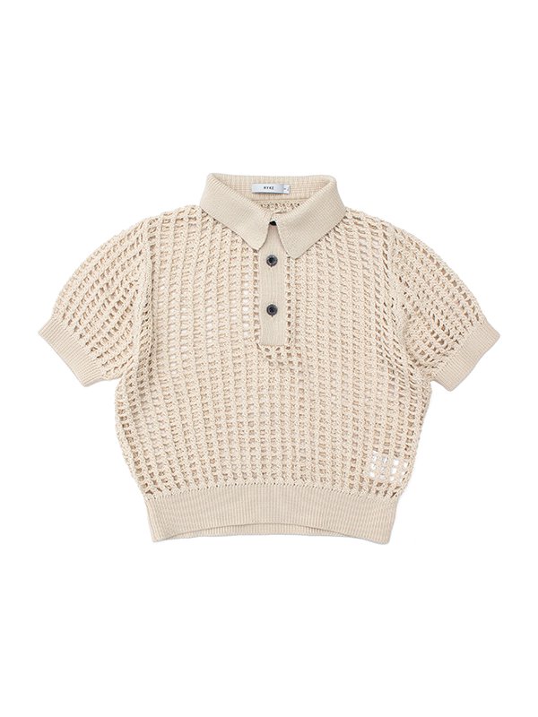 コットン、ポリエステルの糸をメッシュ柄に編み込まれたポロセーター。