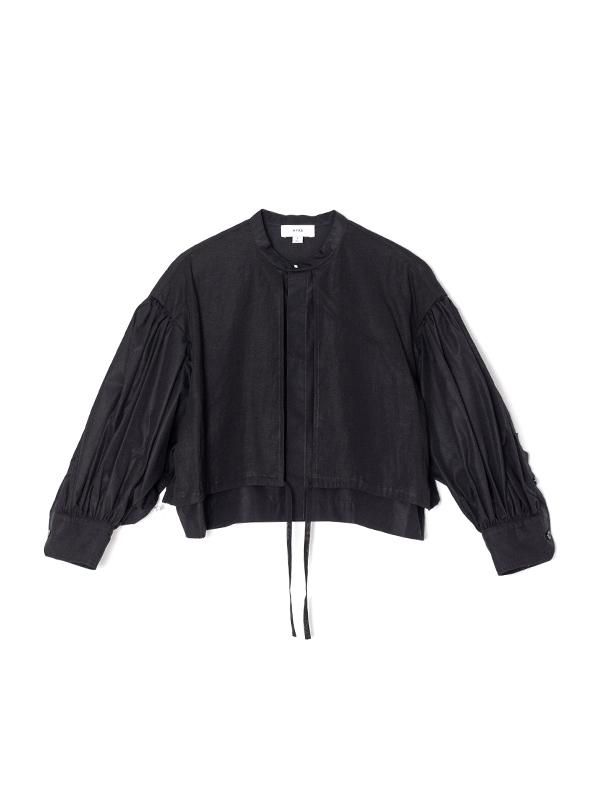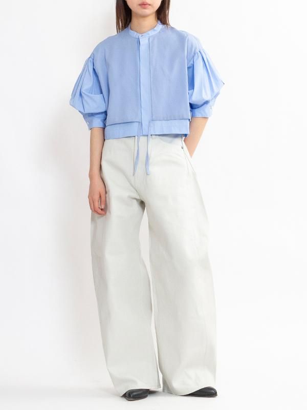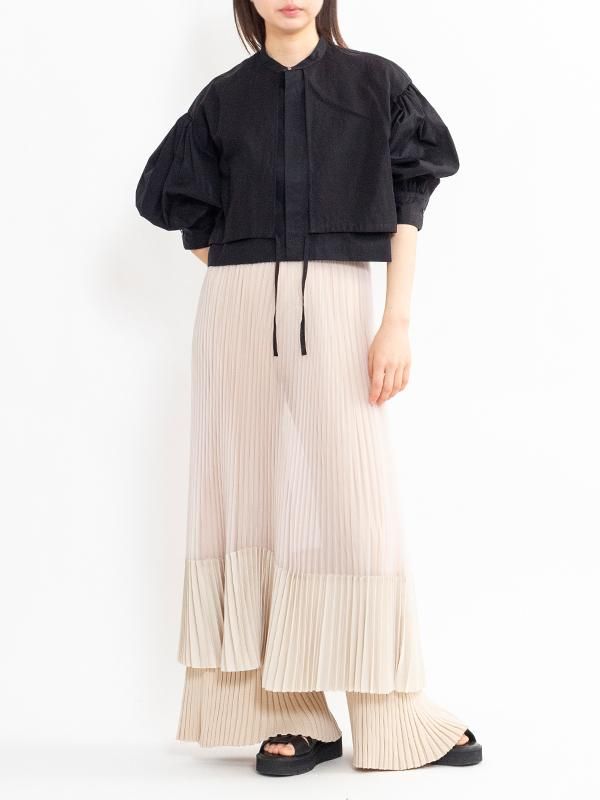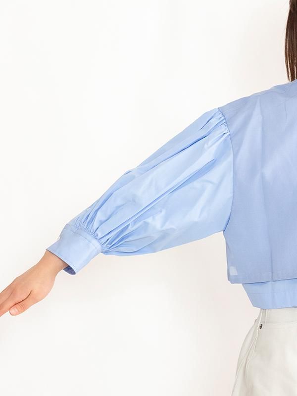 コットンブロードとコットンボイルの生地が使用されたバルーンスリーブドレス。