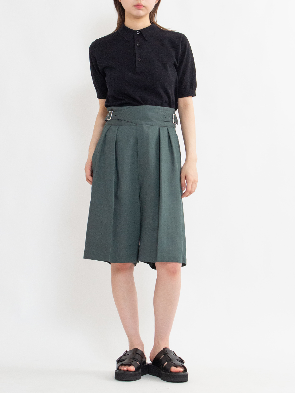レーヨン混のツイル素材が特徴のショートパンツ。