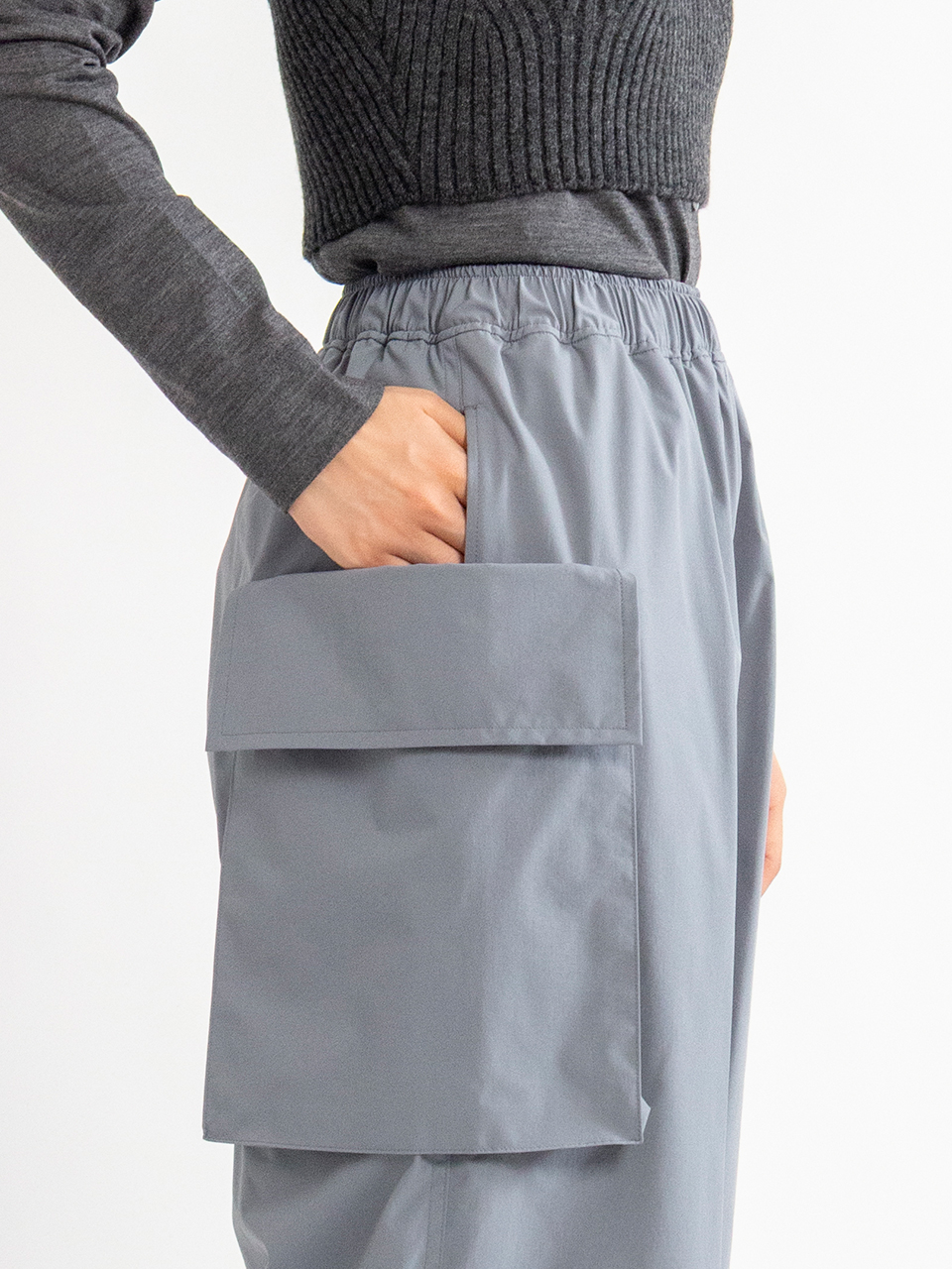 ウエストはゴム仕様で内側にドローストリングを配置しているため、デイリーにもおすすめの一着。
