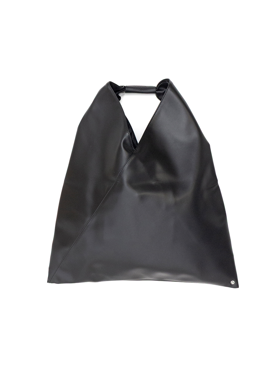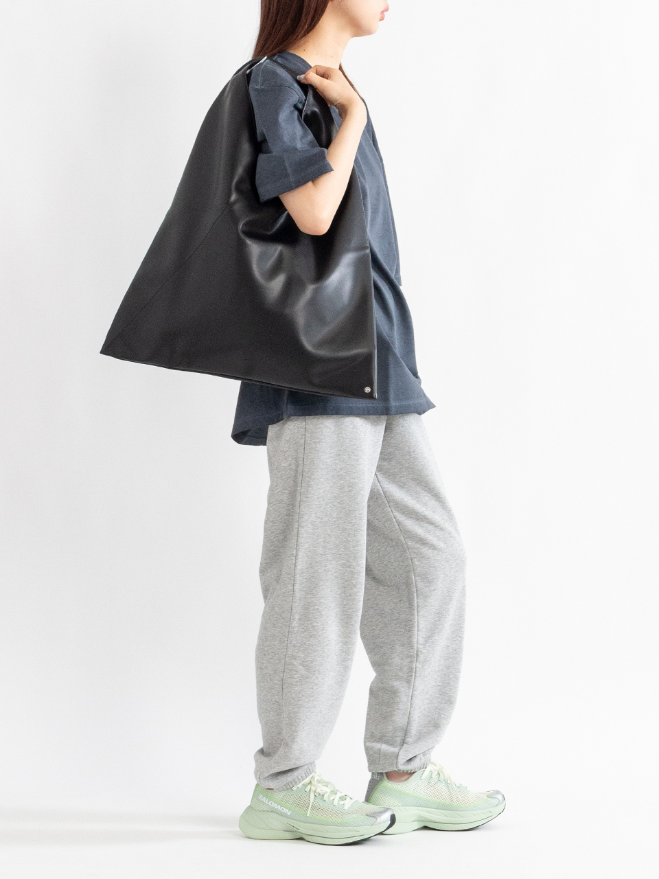 三角のフォルムが印象的で、柔らかな素材感がスタイリングのポイントになります。