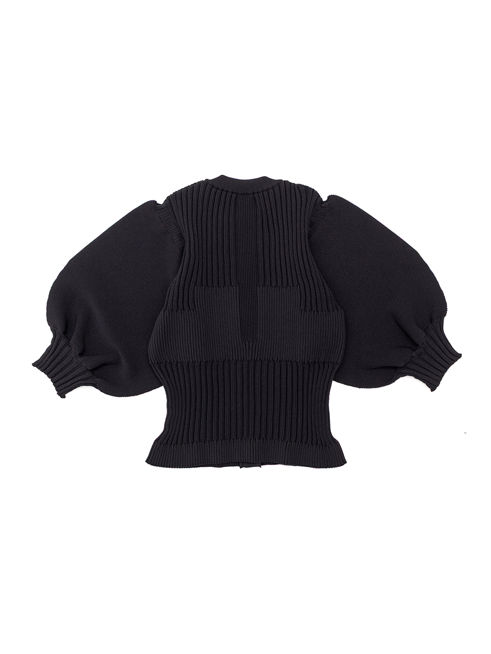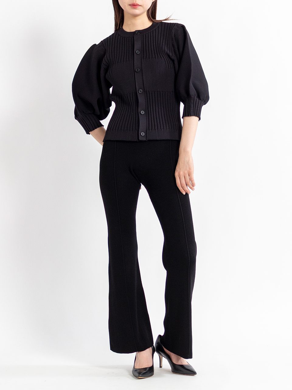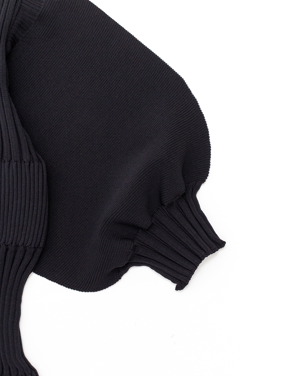 ボディのタイトフィットシルエットと袖のボリューミーさがお上品な印象を与えます