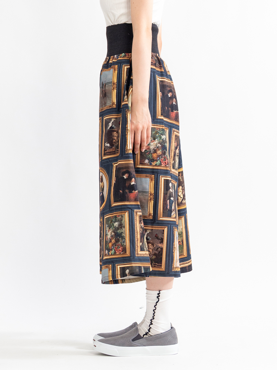 名画がデザインされたフルグラフィックプリントが印象的なボトムス。