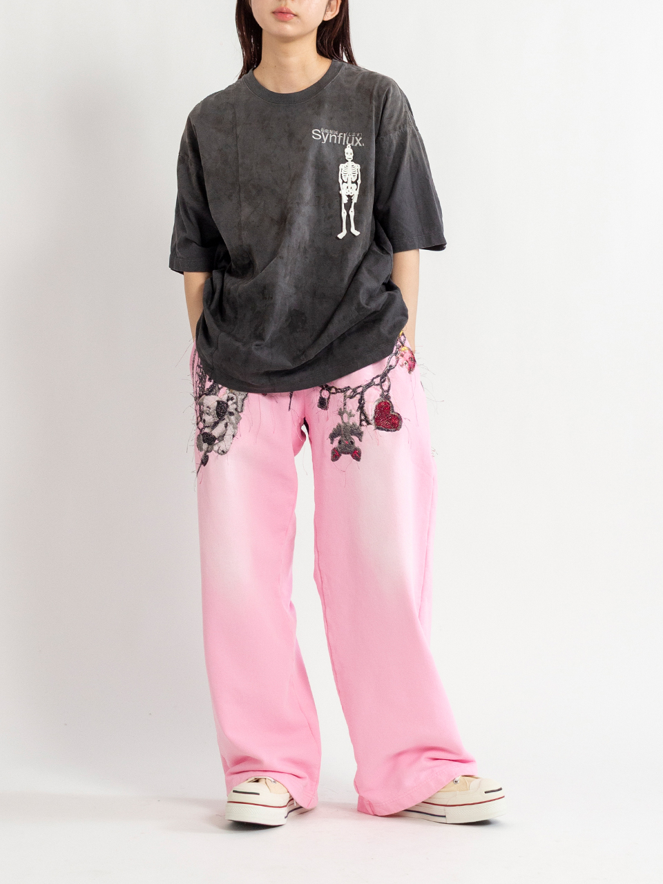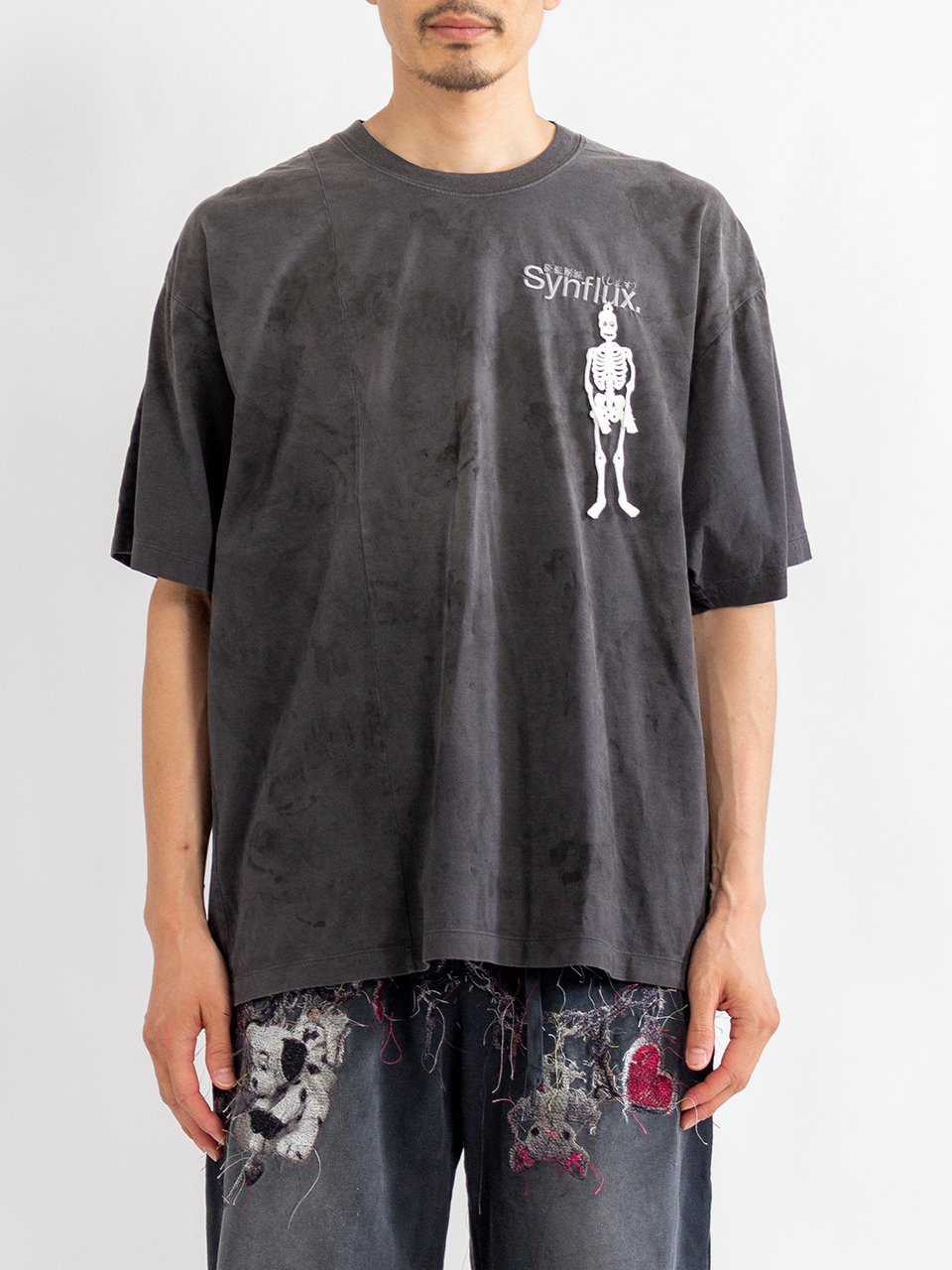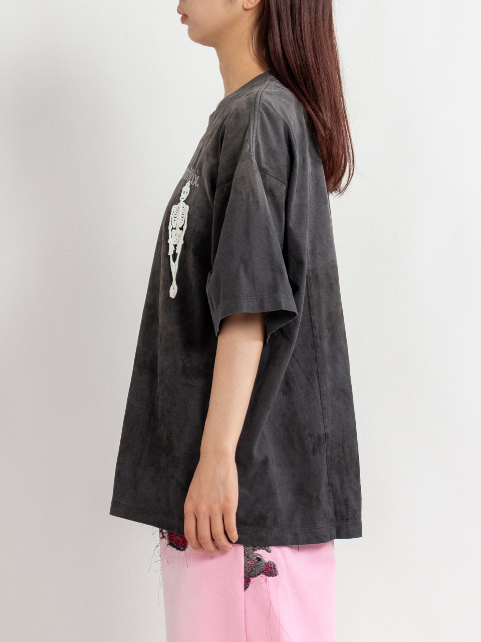 胸元には、‘‘怖い‘‘と敬遠されがちな骸骨を暗闇で光る糸を使用し刺繍で表現しています。