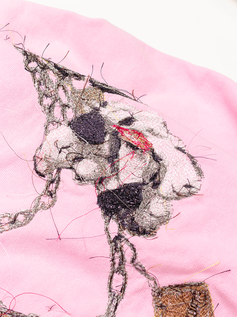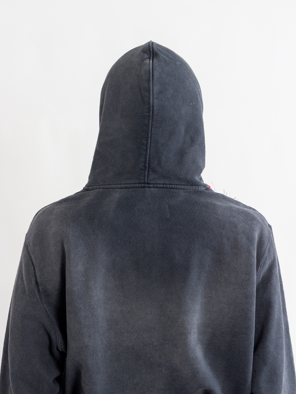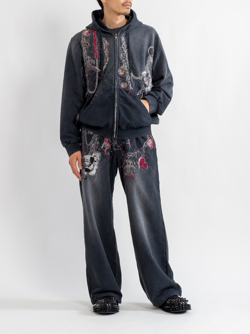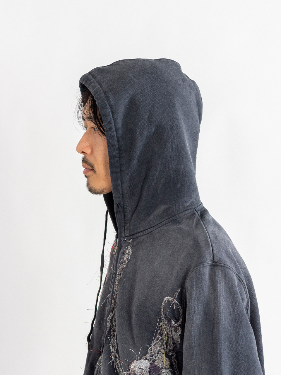 まるでチェーンアクセサリーをまとったかのうようなジップアップフーディー。