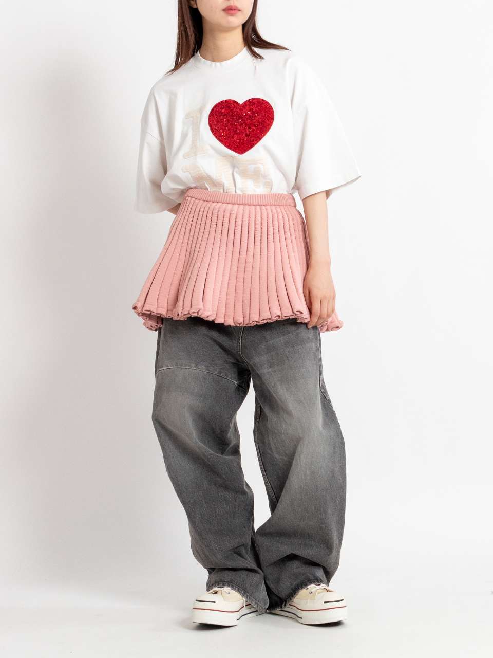 日本のヤンキー文化に根付く“スケバン”のプリーツスカートを、ホールガーメント技術でニットに落とし込んだ一着。