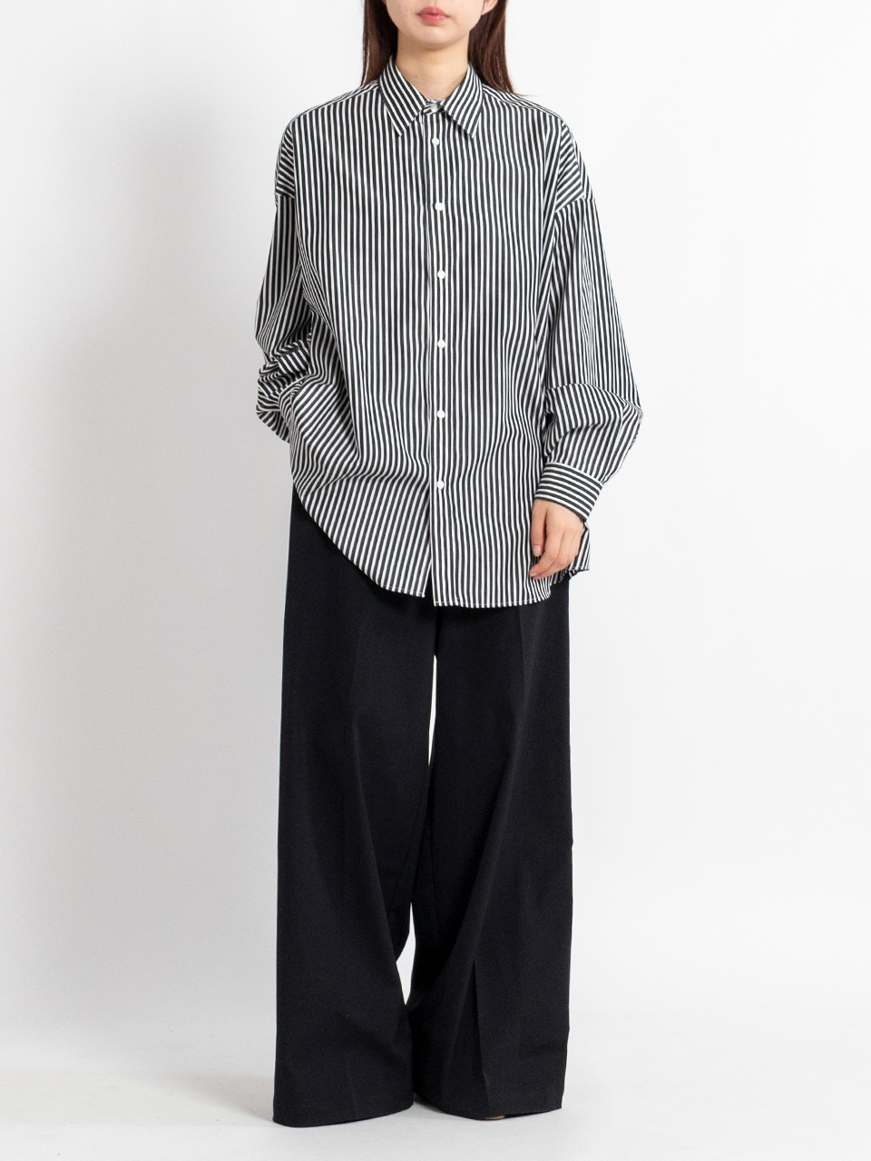 しなやかで適度な光沢感を放つスーピマコットンを用いて限界に近い密度に織り上げたクリアな表情とハリ感が特徴のハイカウントブロードを使用。