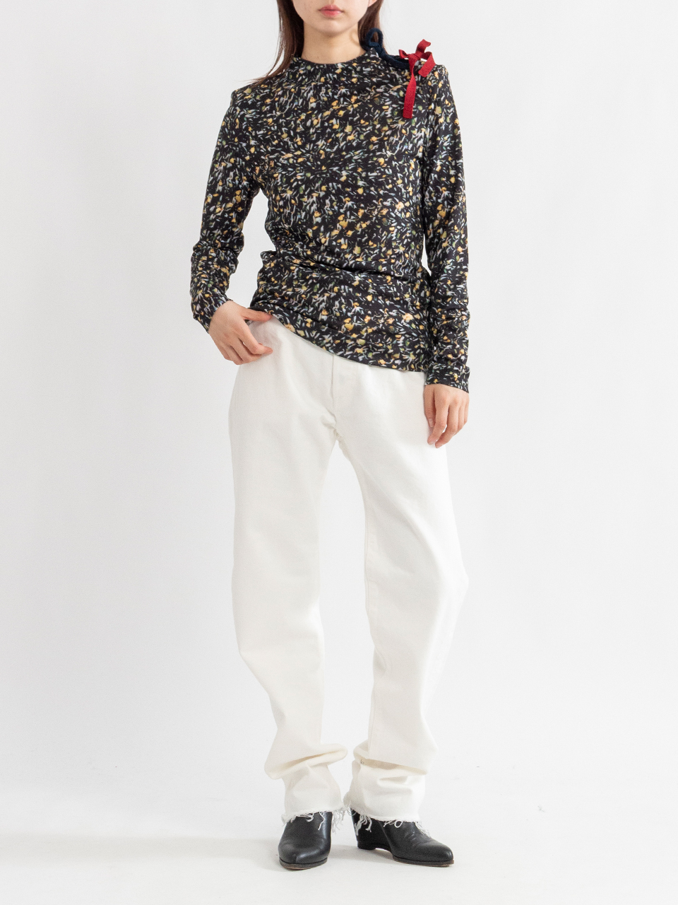 アンティーク調の小花柄、天然石のような断面をイメージしたマーブル柄、クールな線描き風の花が特徴的な3パターンのデザインのロングスリーブのカットソー。