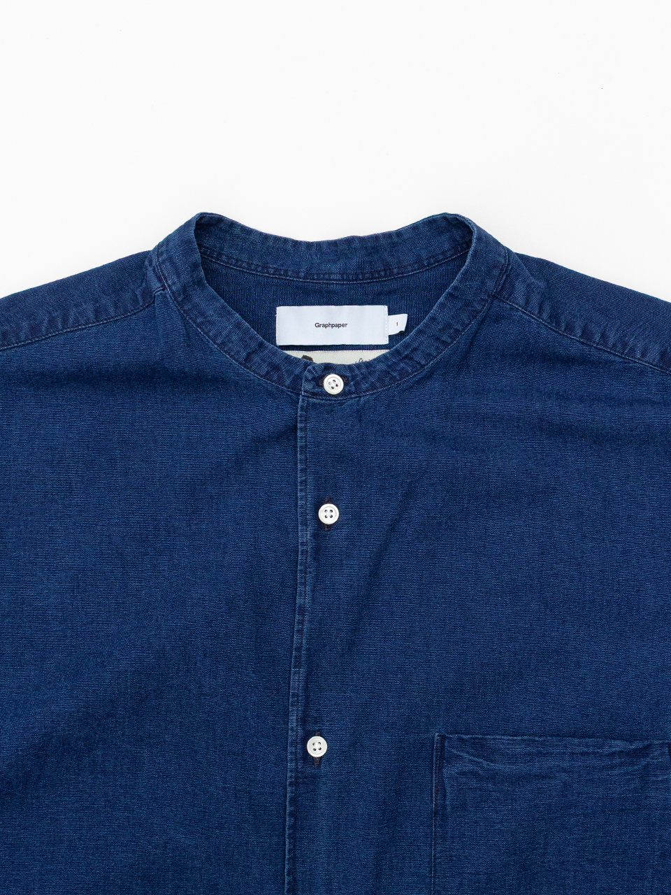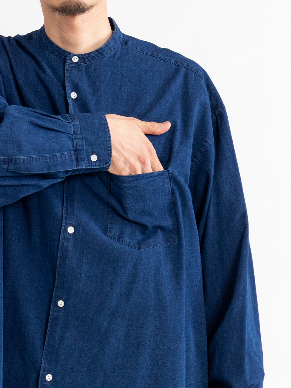 SIDOGRAS Indigo Poplin L/S Oversized Band Collar Shirt