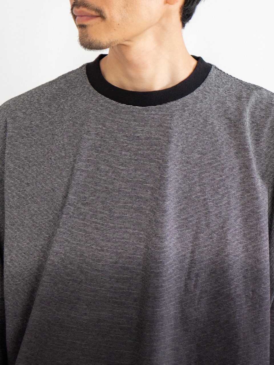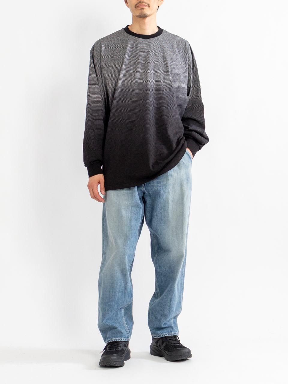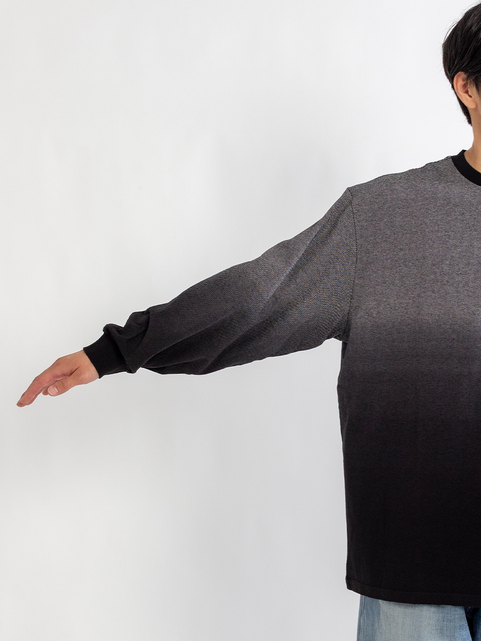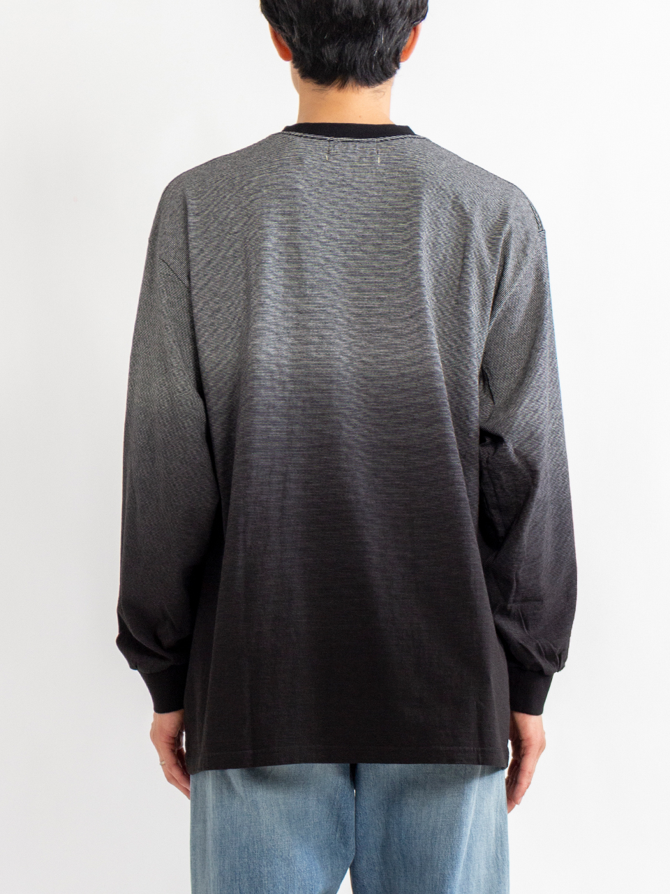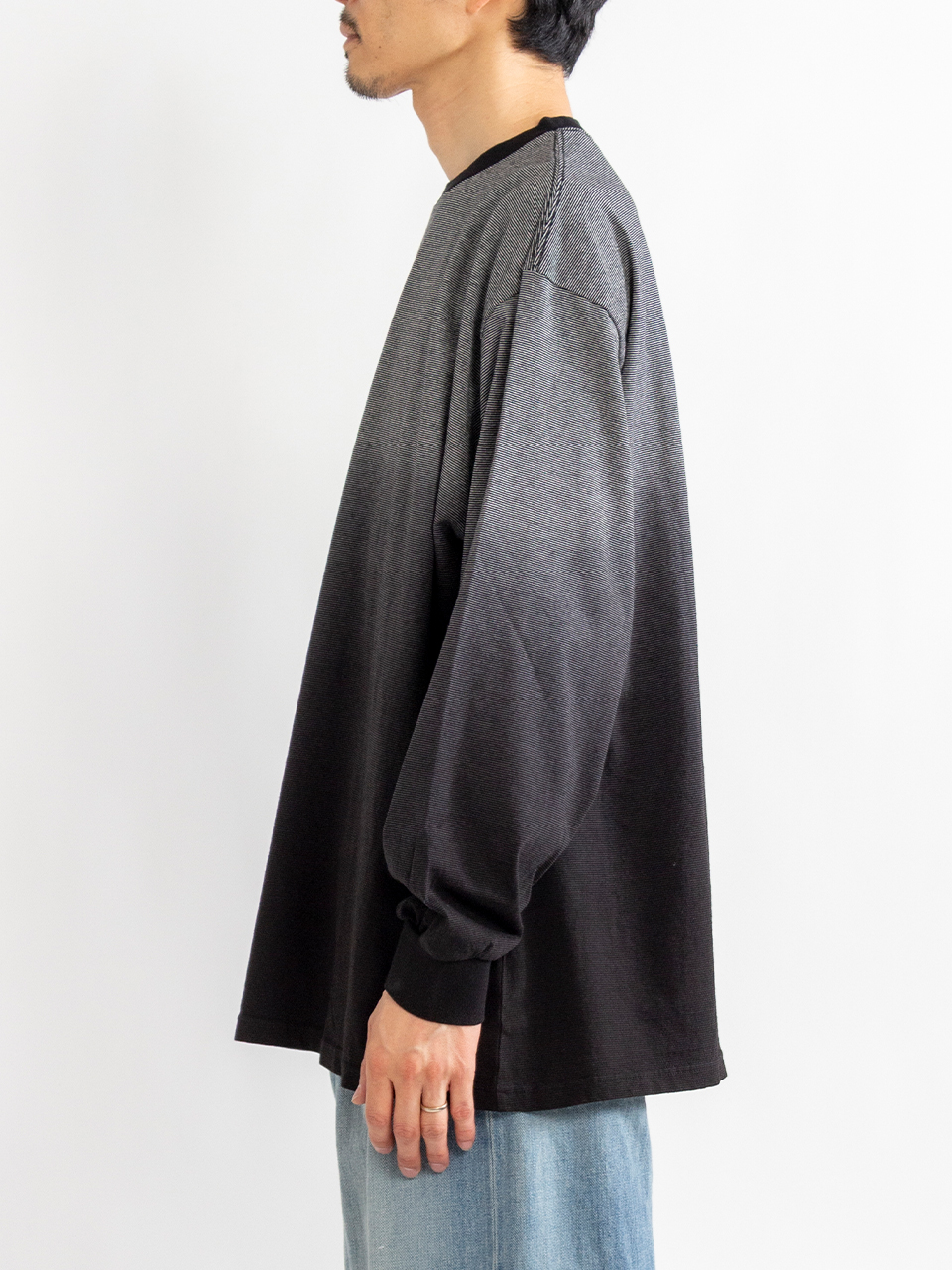 段染めで染め上げることで無地から徐々にボーダーへと移り変わるロングスリーブTシャツです。