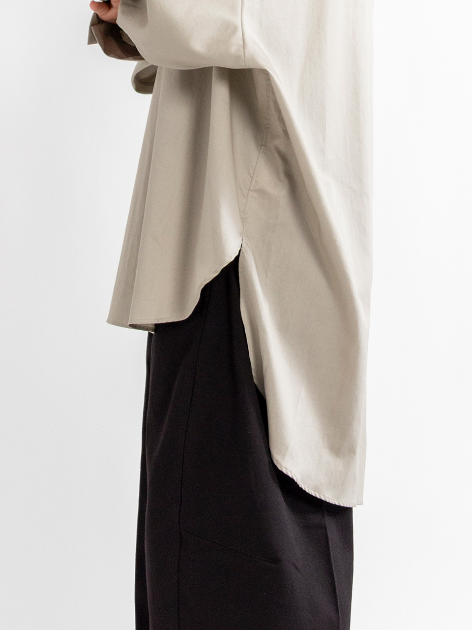 長めのカフスとゆったりしたシルエットが特徴のアイテム。