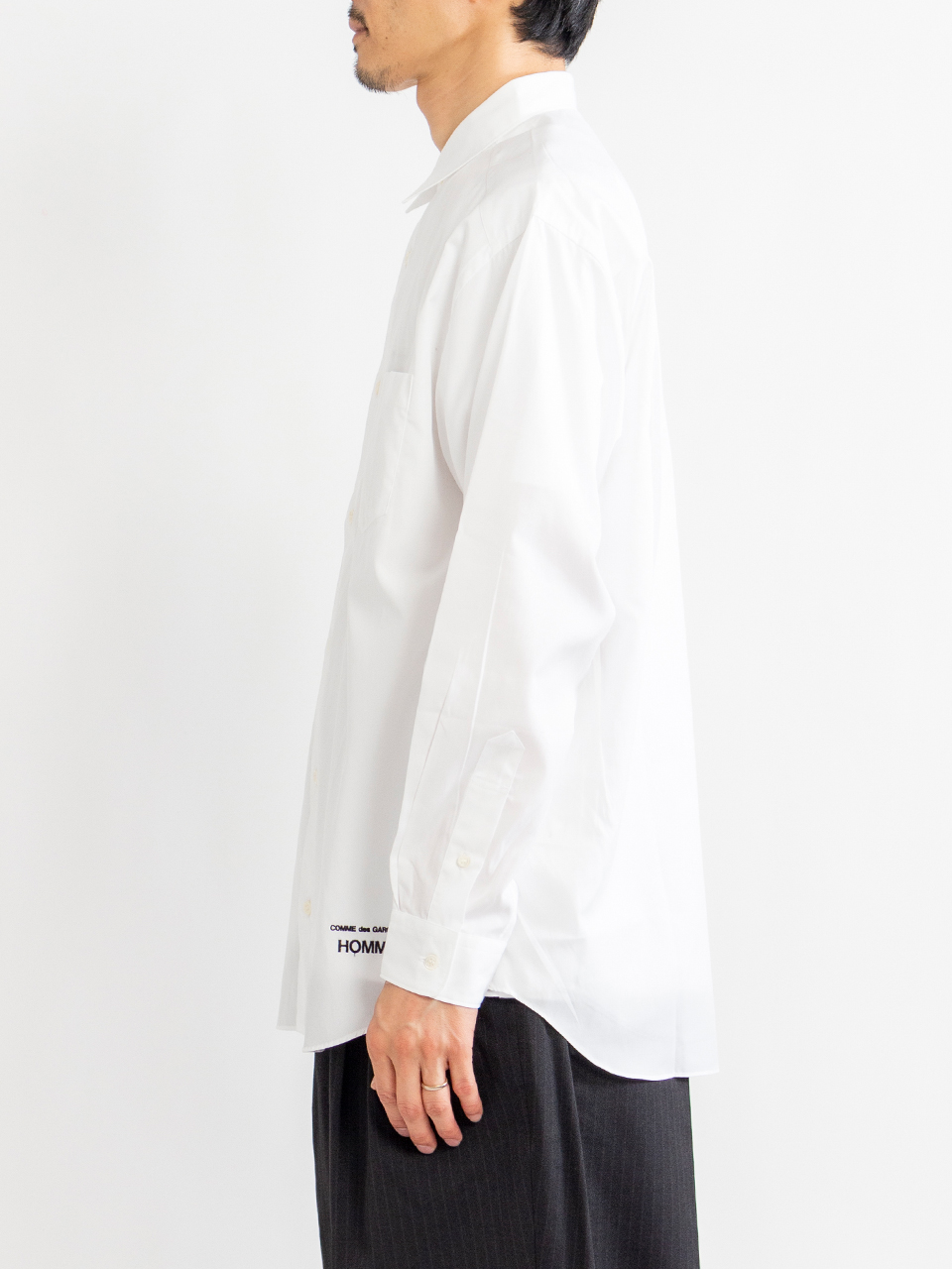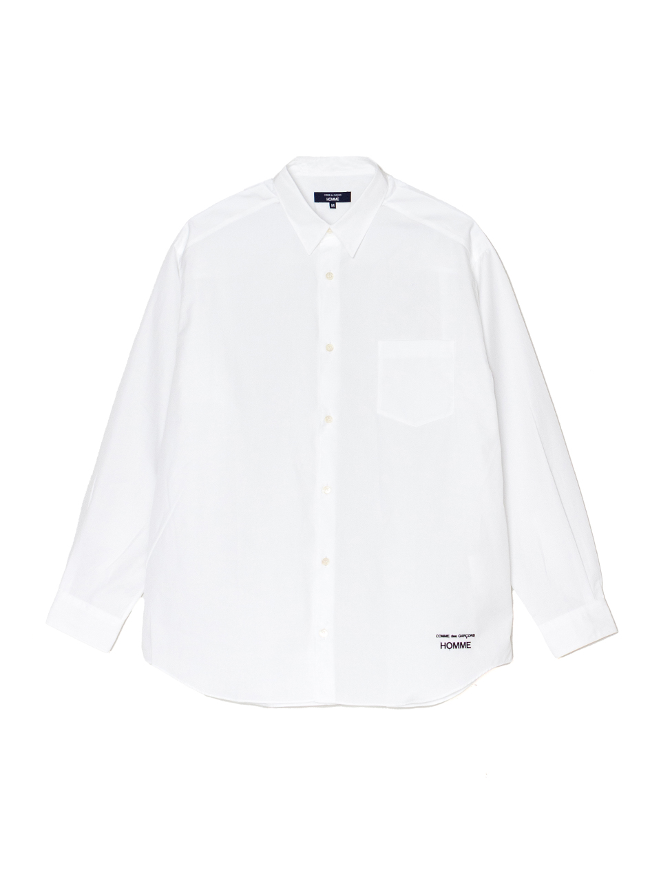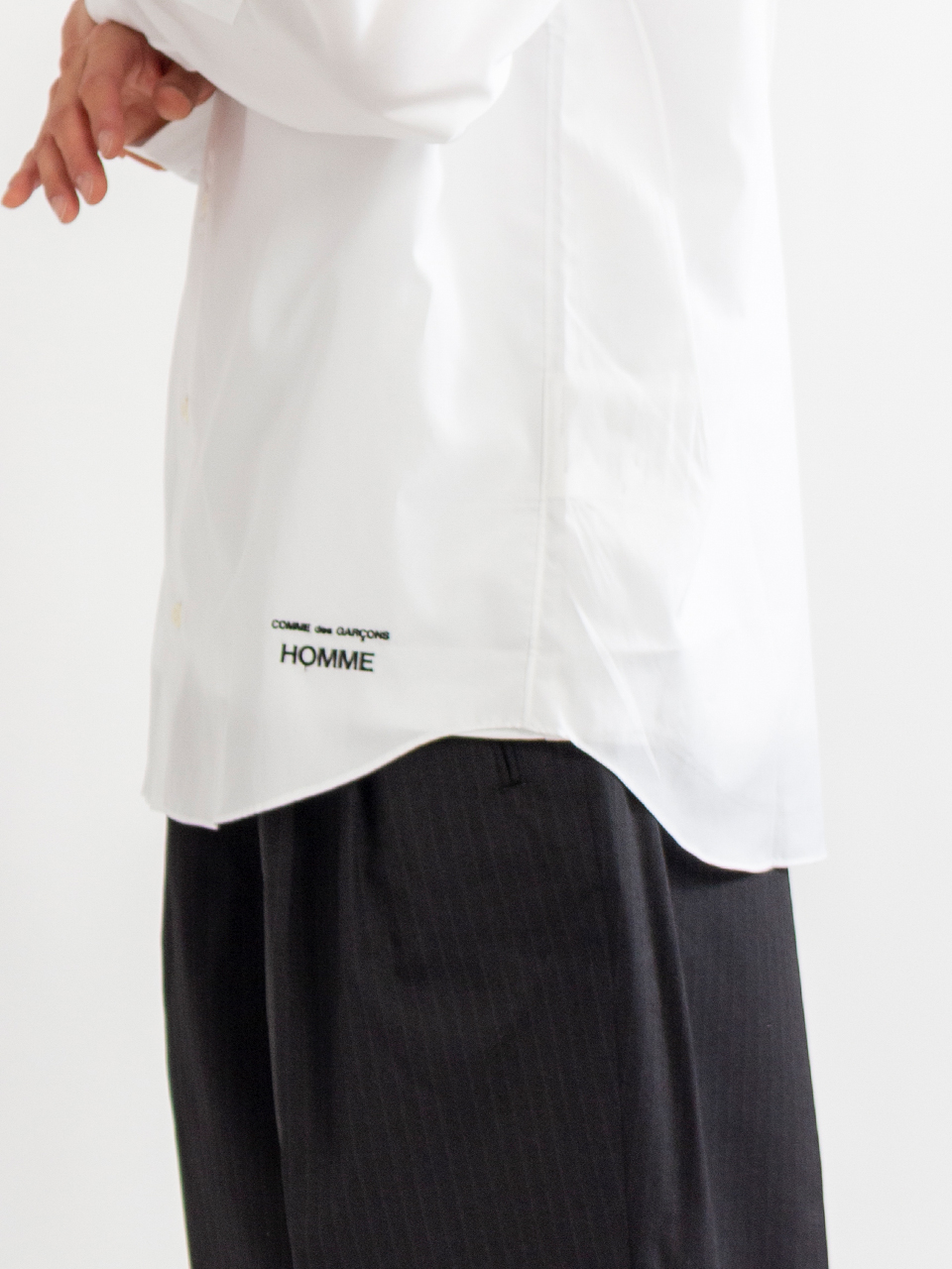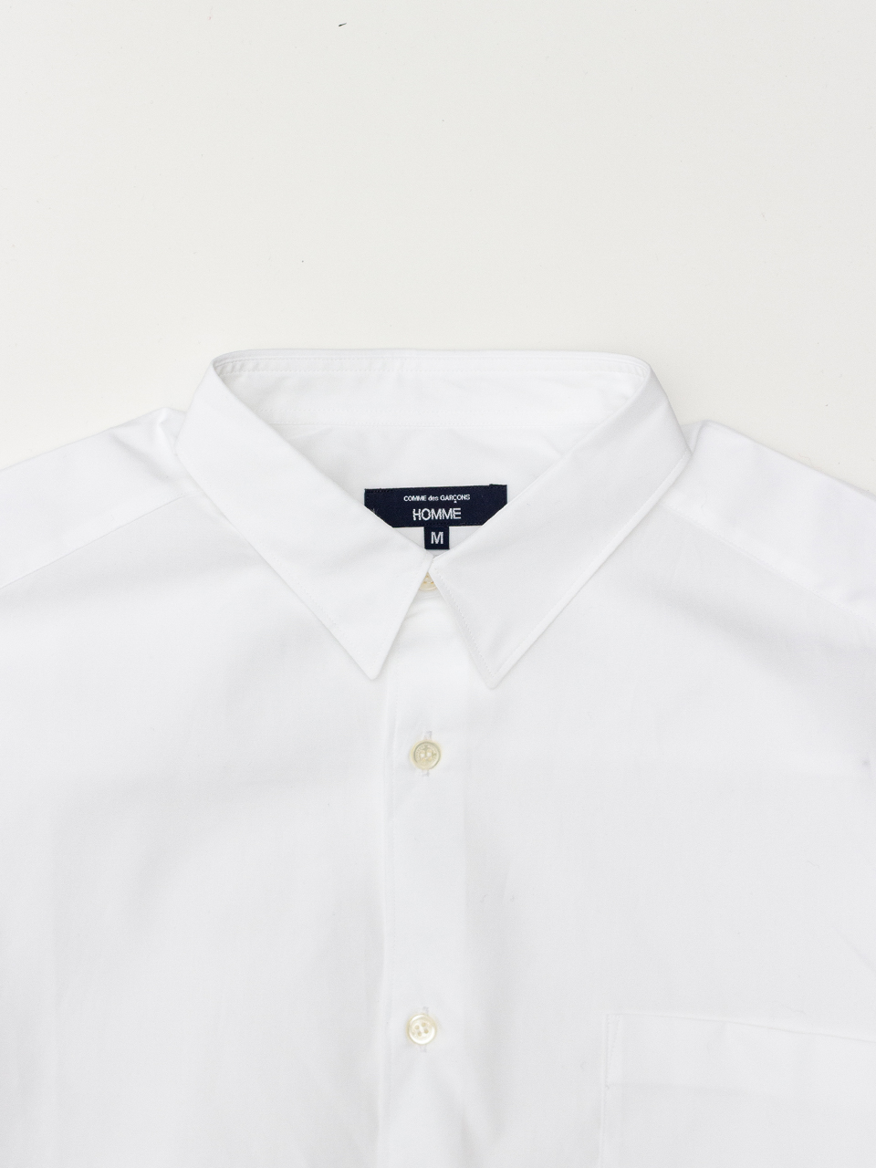 きめが細かく少し光沢のある綿ブロード素材を使用した〈コム デ ギャルソン・オム〉のベーシックシャツ。