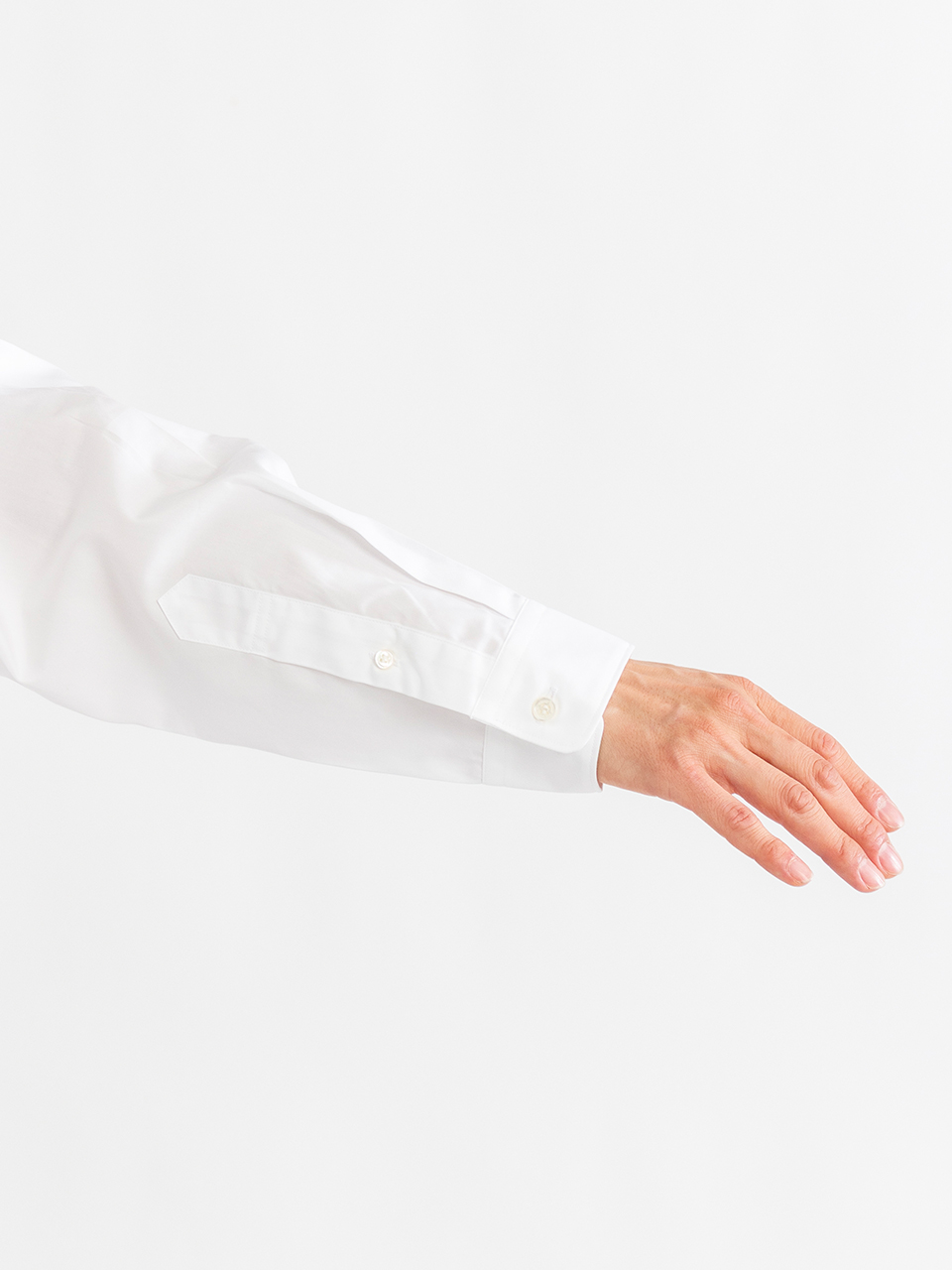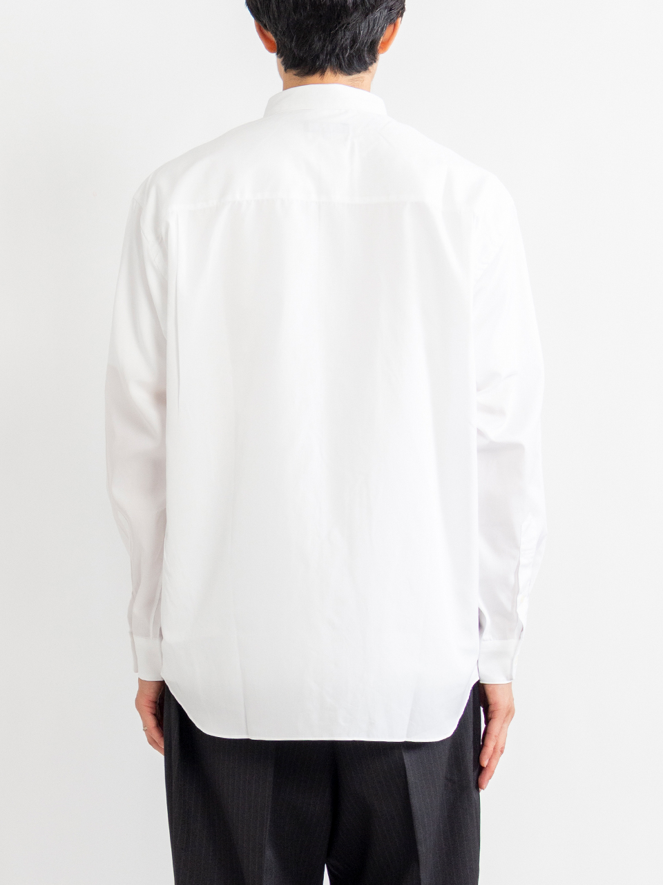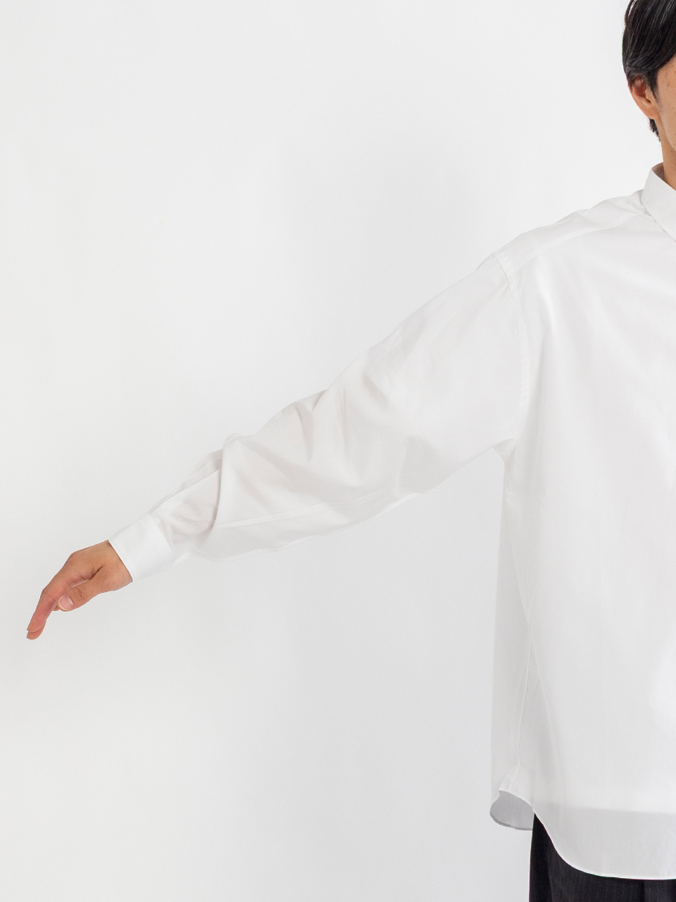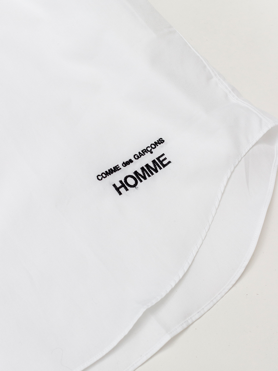 きめが細かく少し光沢のある綿ブロード素材を使用した〈コム デ ギャルソン・オム〉のベーシックシャツ。