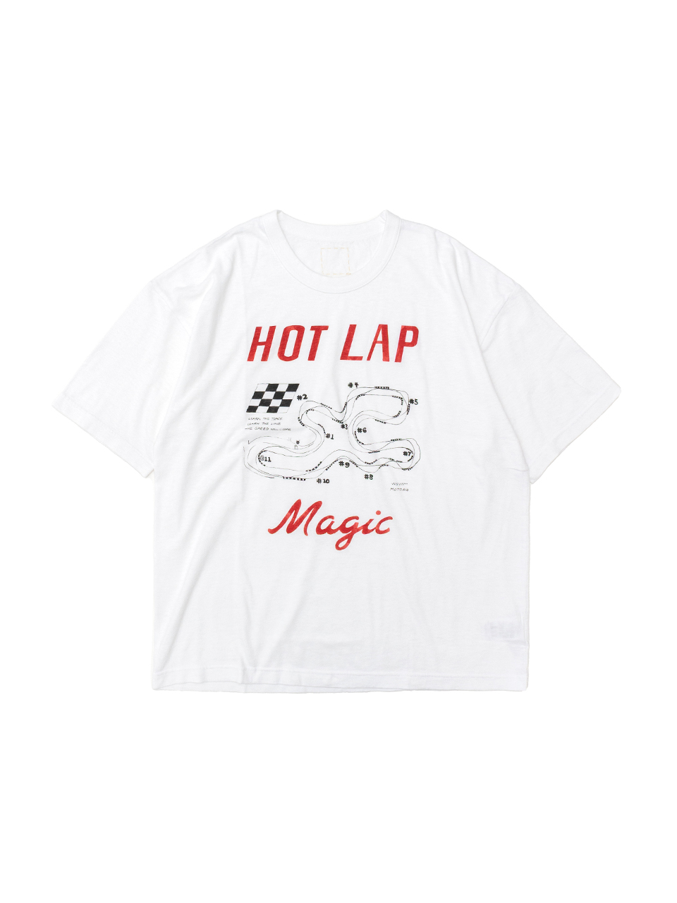 ワンウォッシュで、"HOT LAP Magic”のプリントディテール。