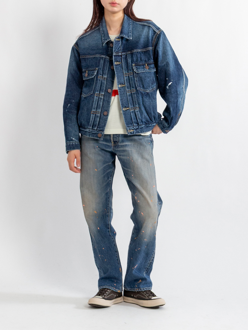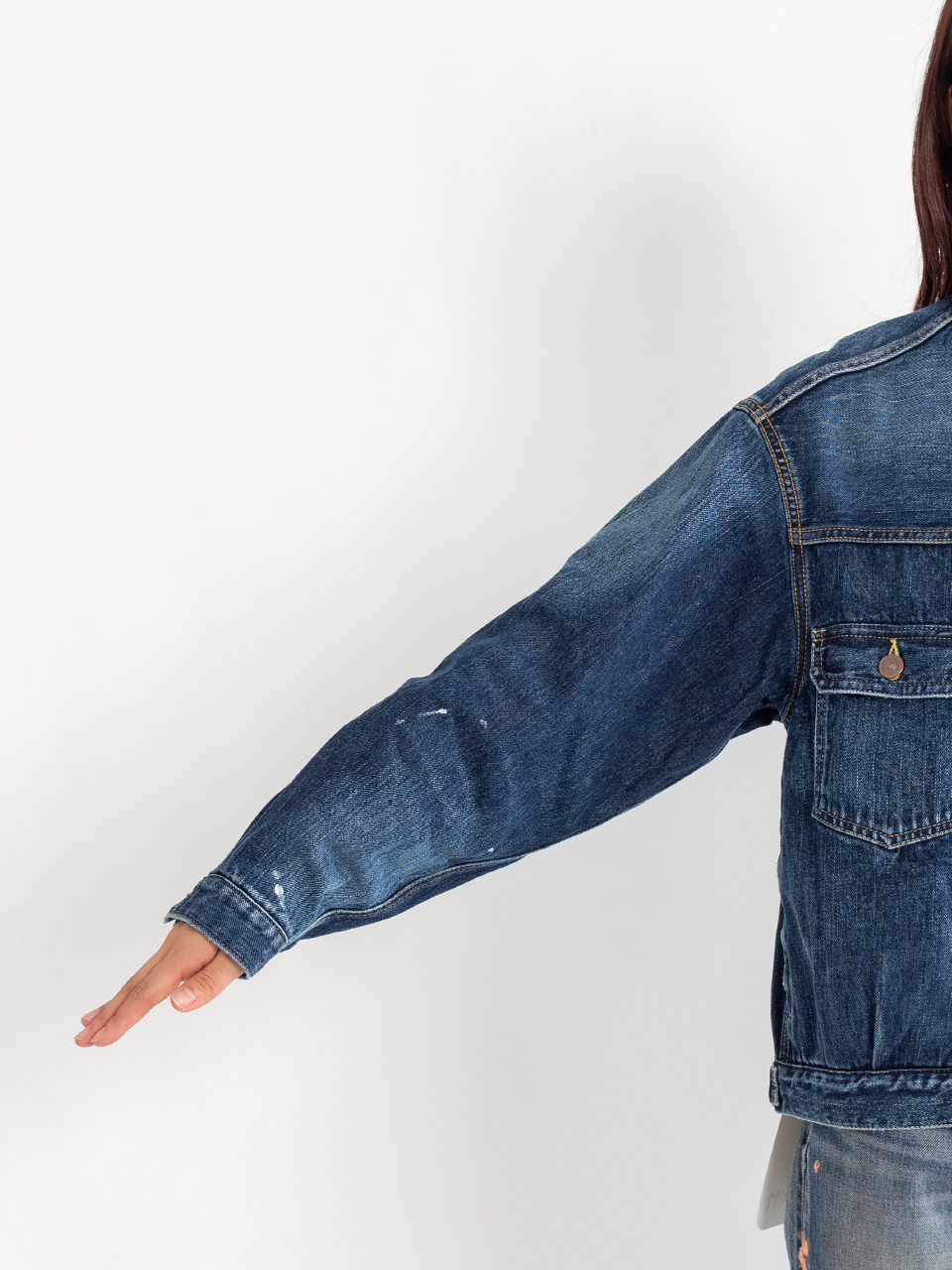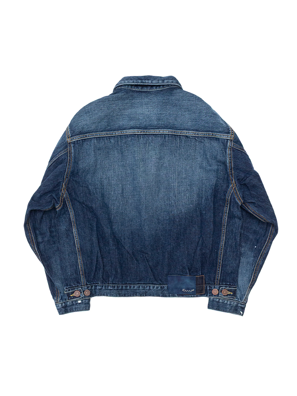 上質な超長綿をストレスをかけず自然なムラを出す自動化されていない紡績機を使用した13ozの5デニムジャケット。