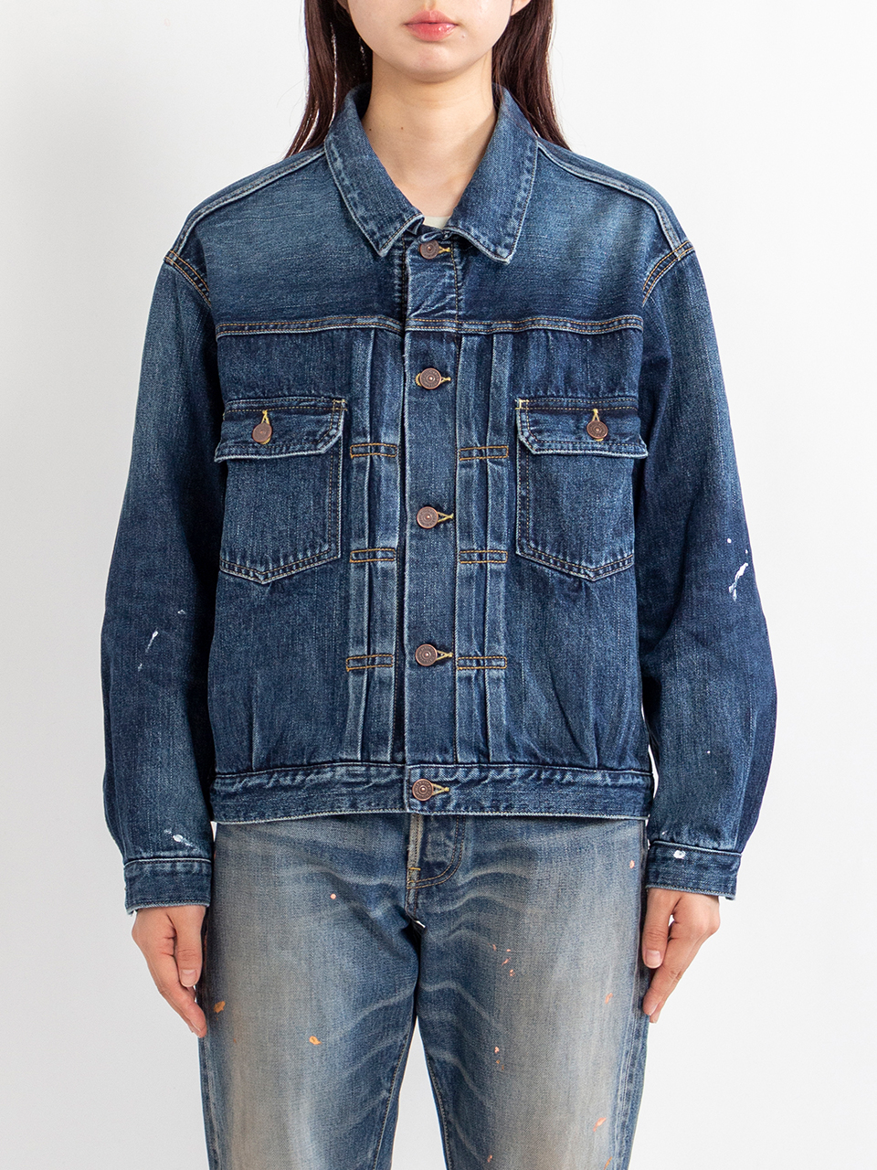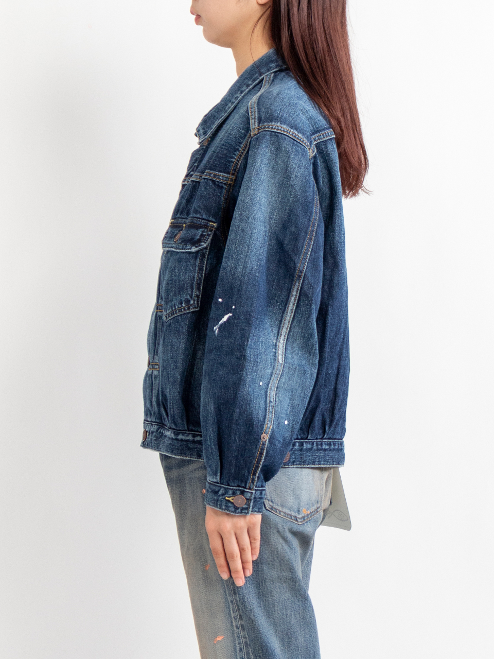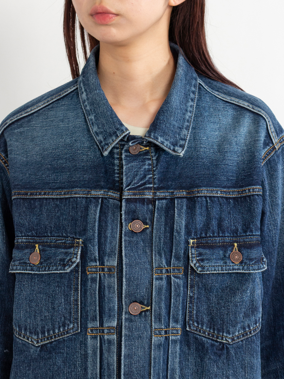 上質な超長綿をストレスをかけず自然なムラを出す自動化されていない紡績機を使用した13ozの5デニムジャケット。