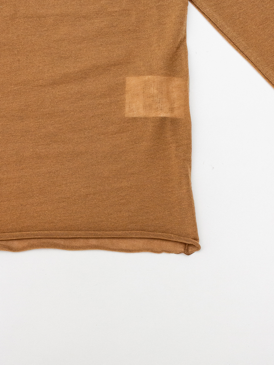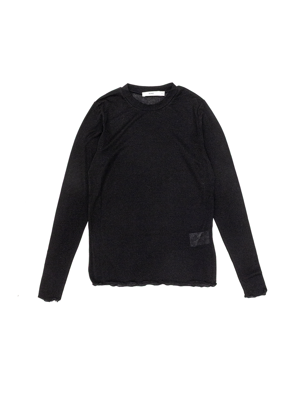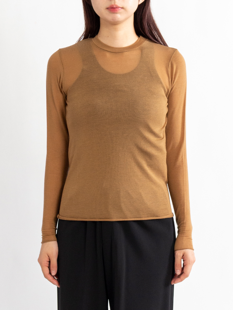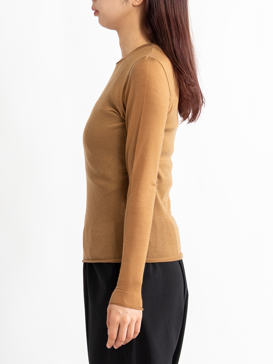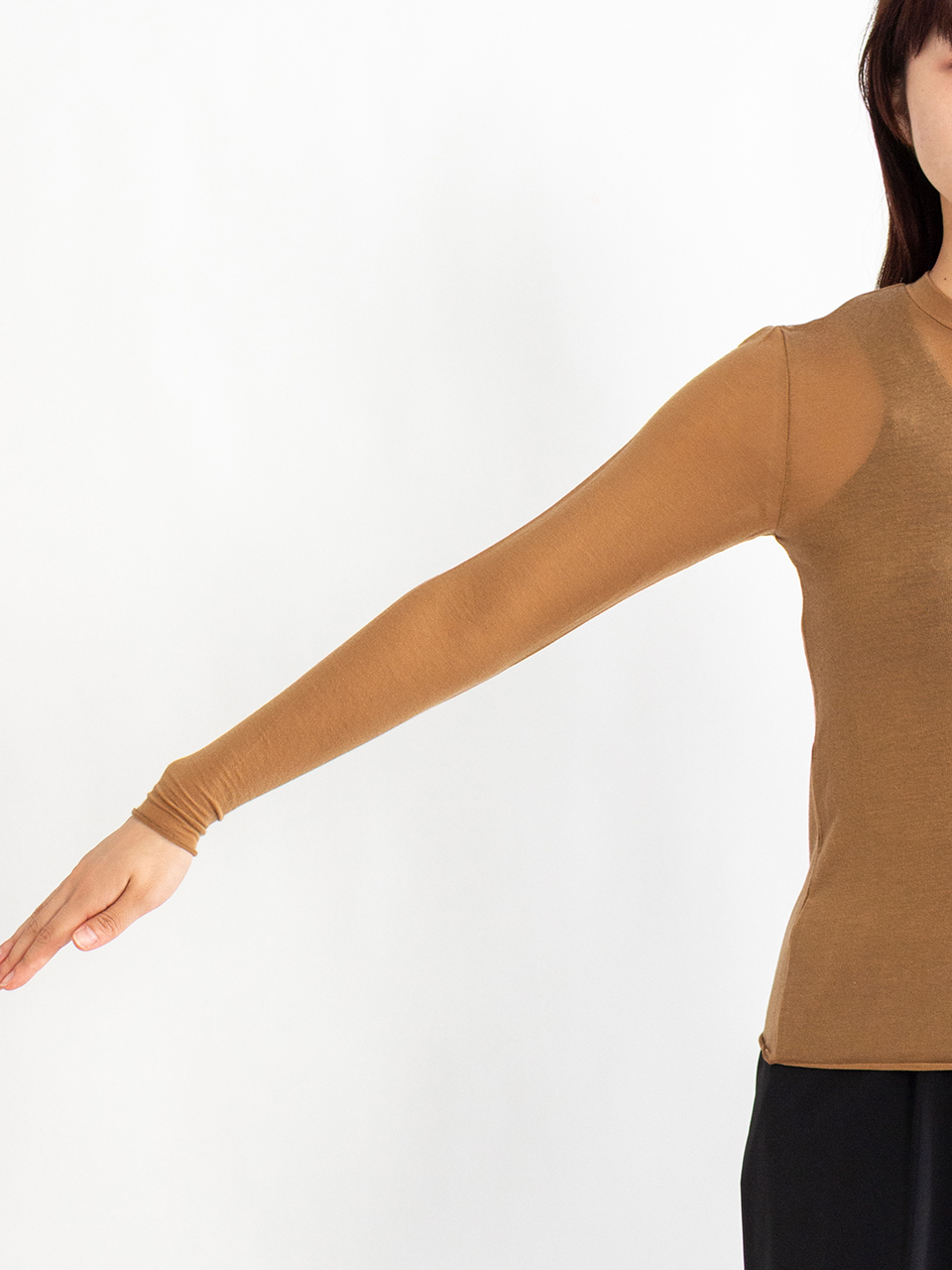 透け感のある素材で、秋冬のインナーとして重宝する一着です。