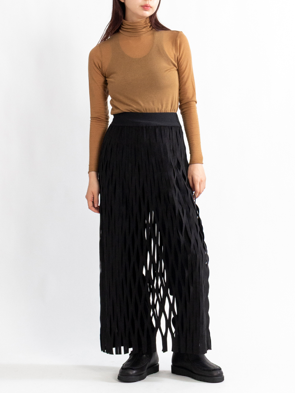 透け感のある素材で、秋冬のインナーとして重宝する一着です。