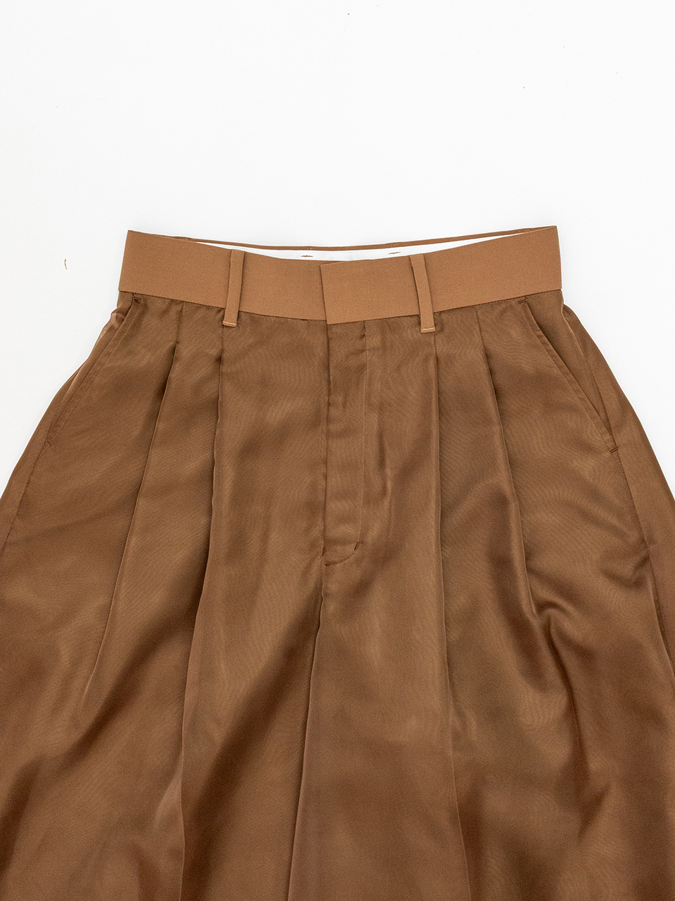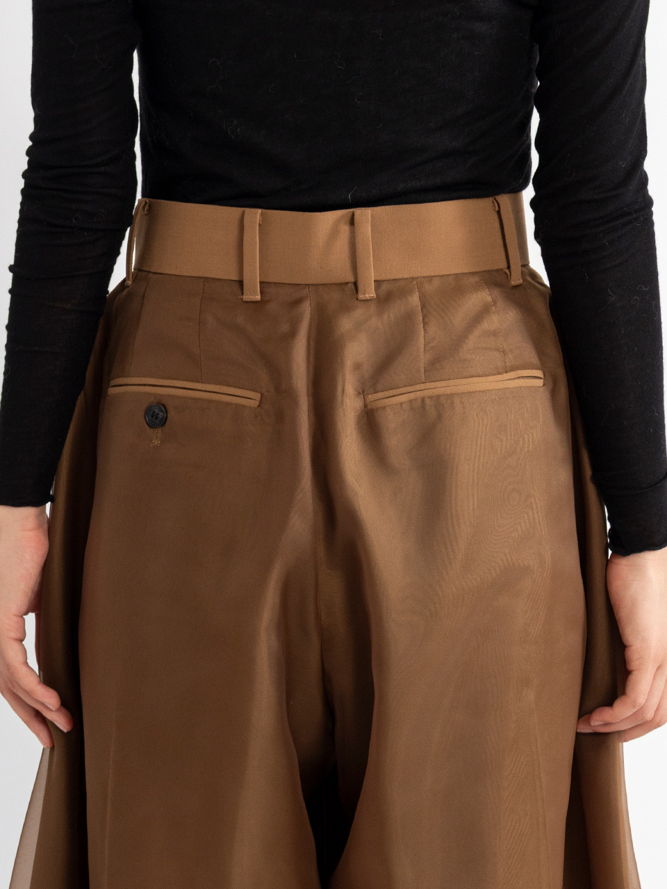ポリエステルオーガンジーを使用したシアーワイドパンツ。