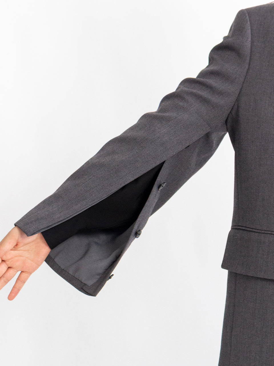 袖口がボタンで開閉でき、アクセントのあるスタイルを実現します。