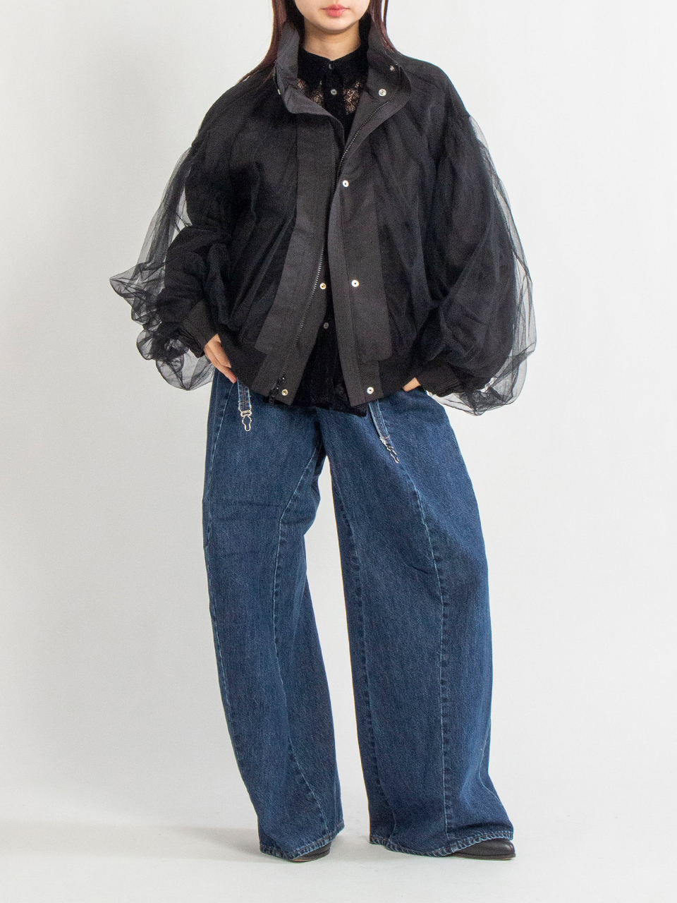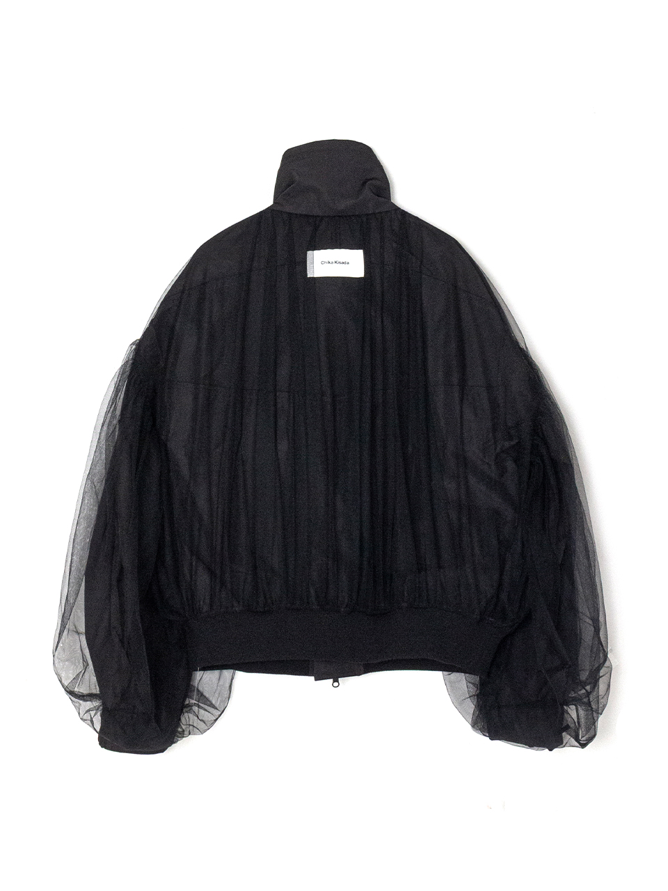 リバーシブル使用のブルゾン。表側はマットなポリエステル素材、裏側は繊細なチュール生地で軽やかな透け感。